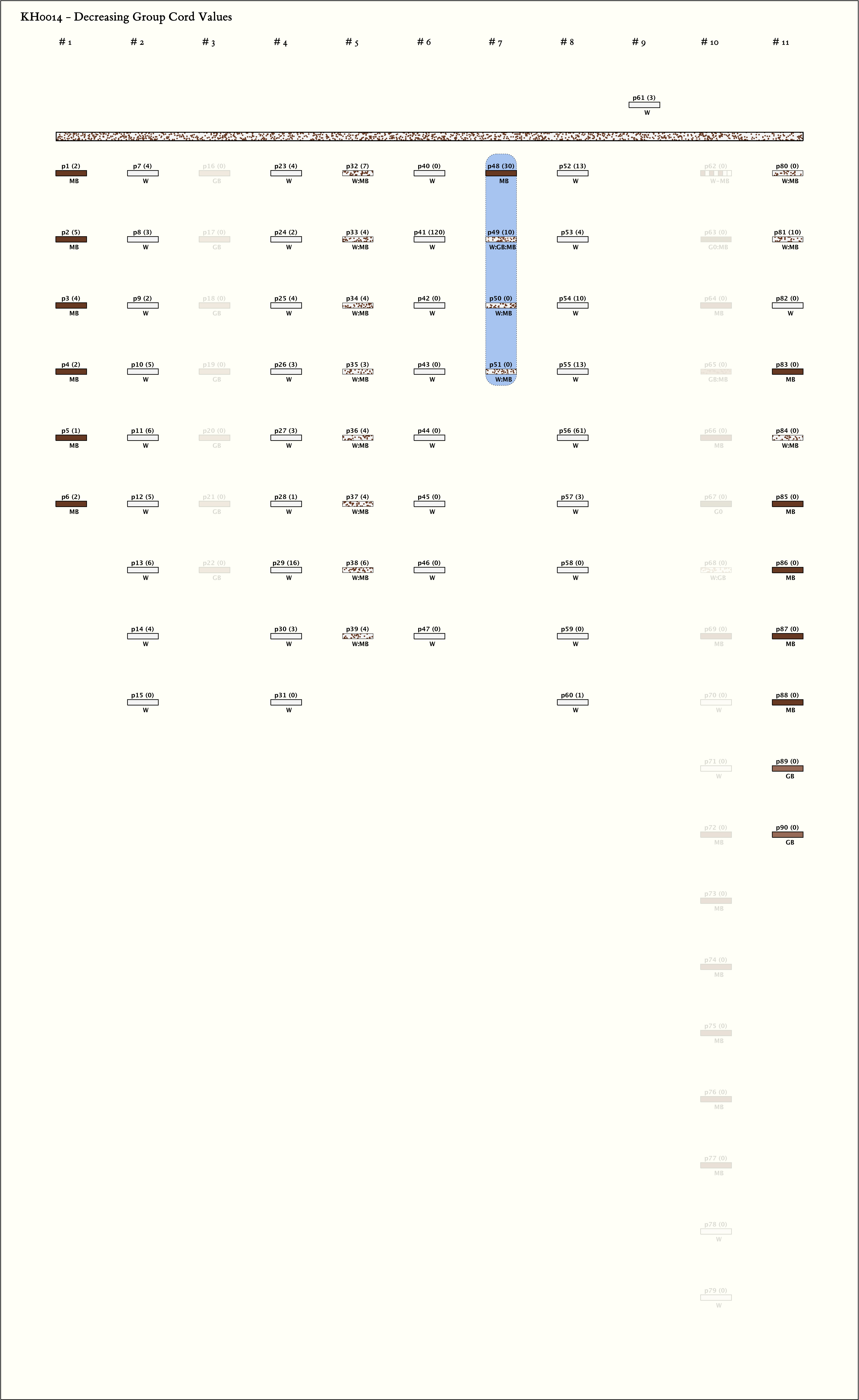 - Groups of W alternate with groups of different colors until the top cord occurs.