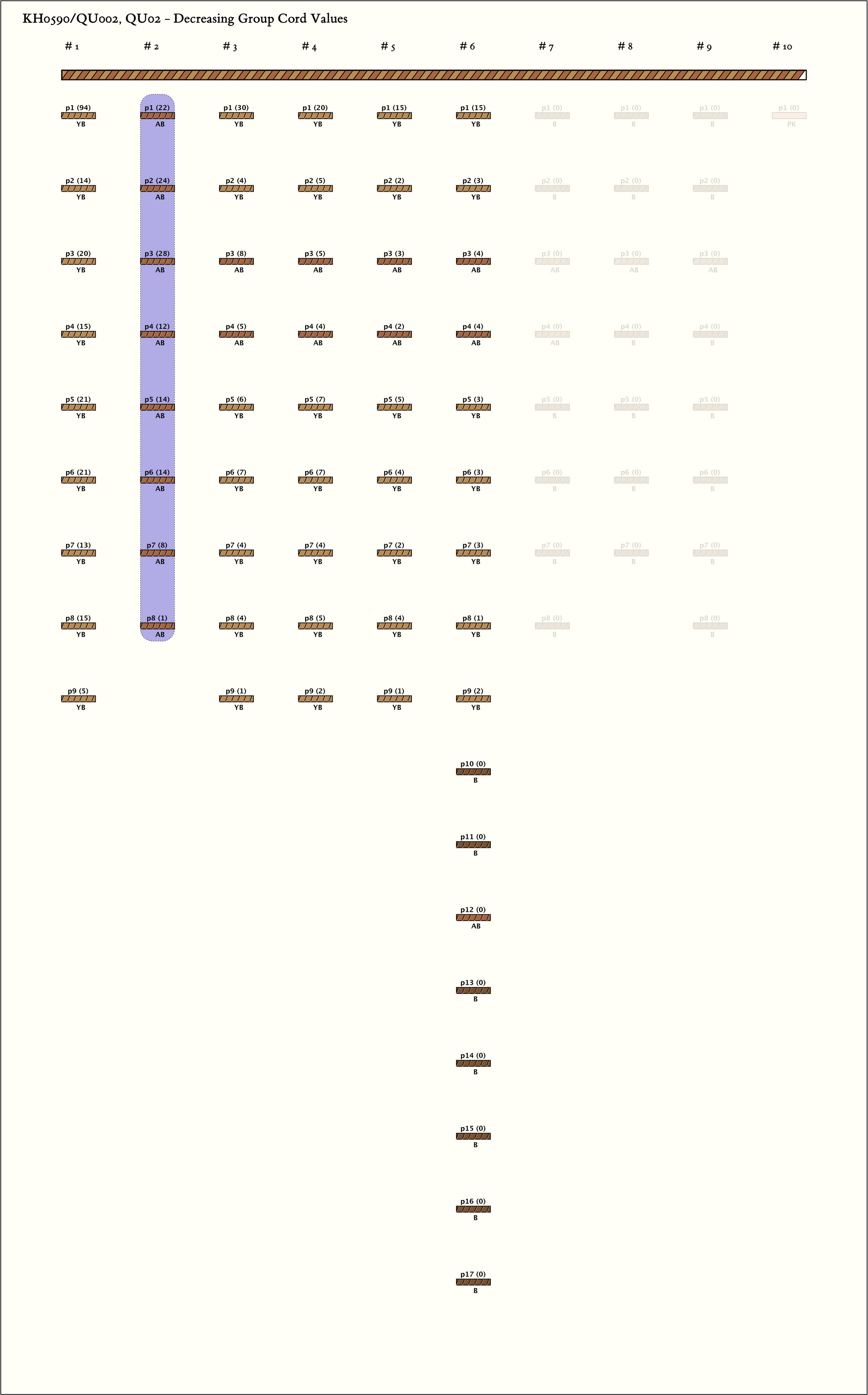 Groups 3, 4, and 5 share a color pattern: 2 YB 2 AB, 5 YB.
