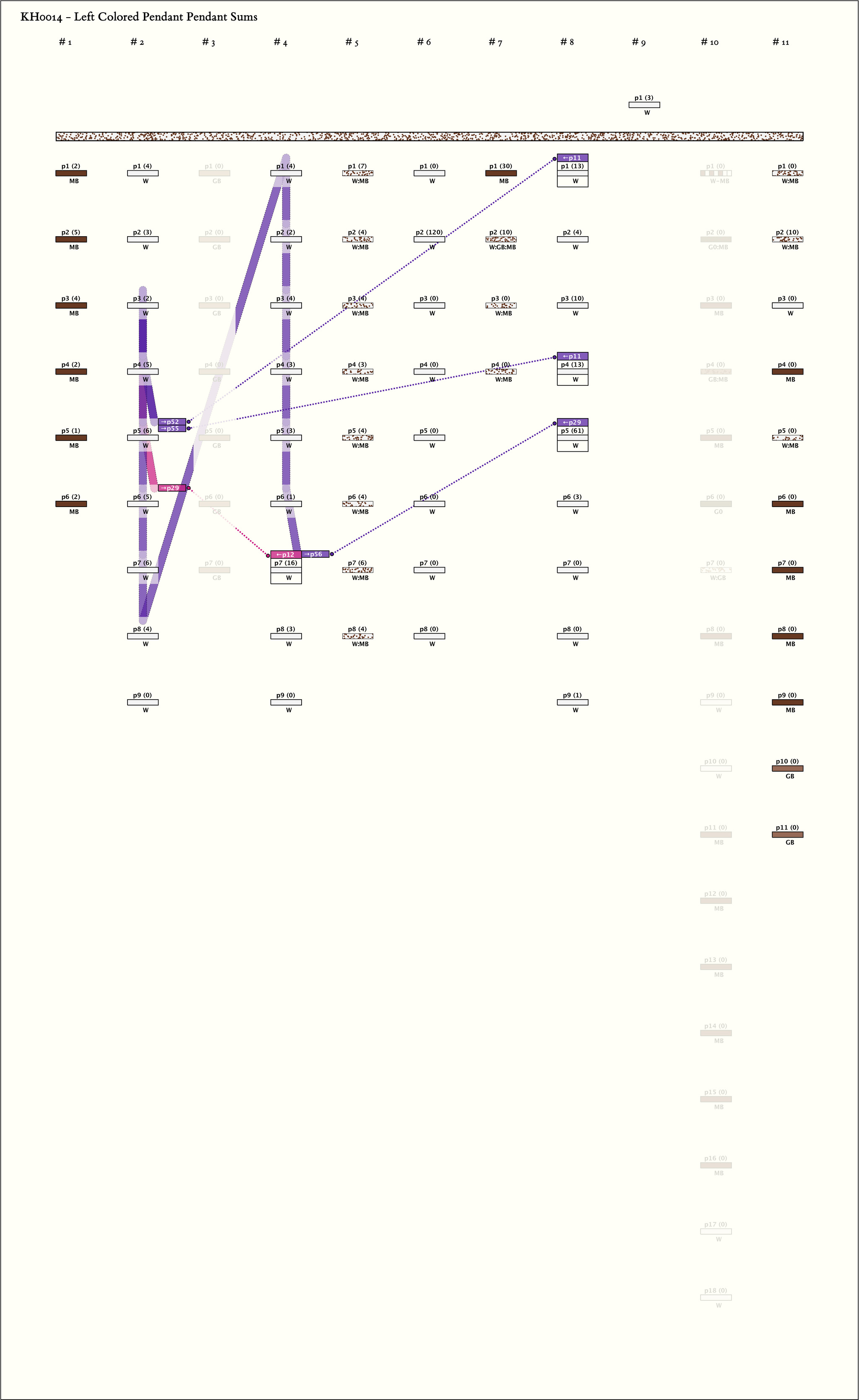 - Groups of W alternate with groups of different colors until the top cord occurs.