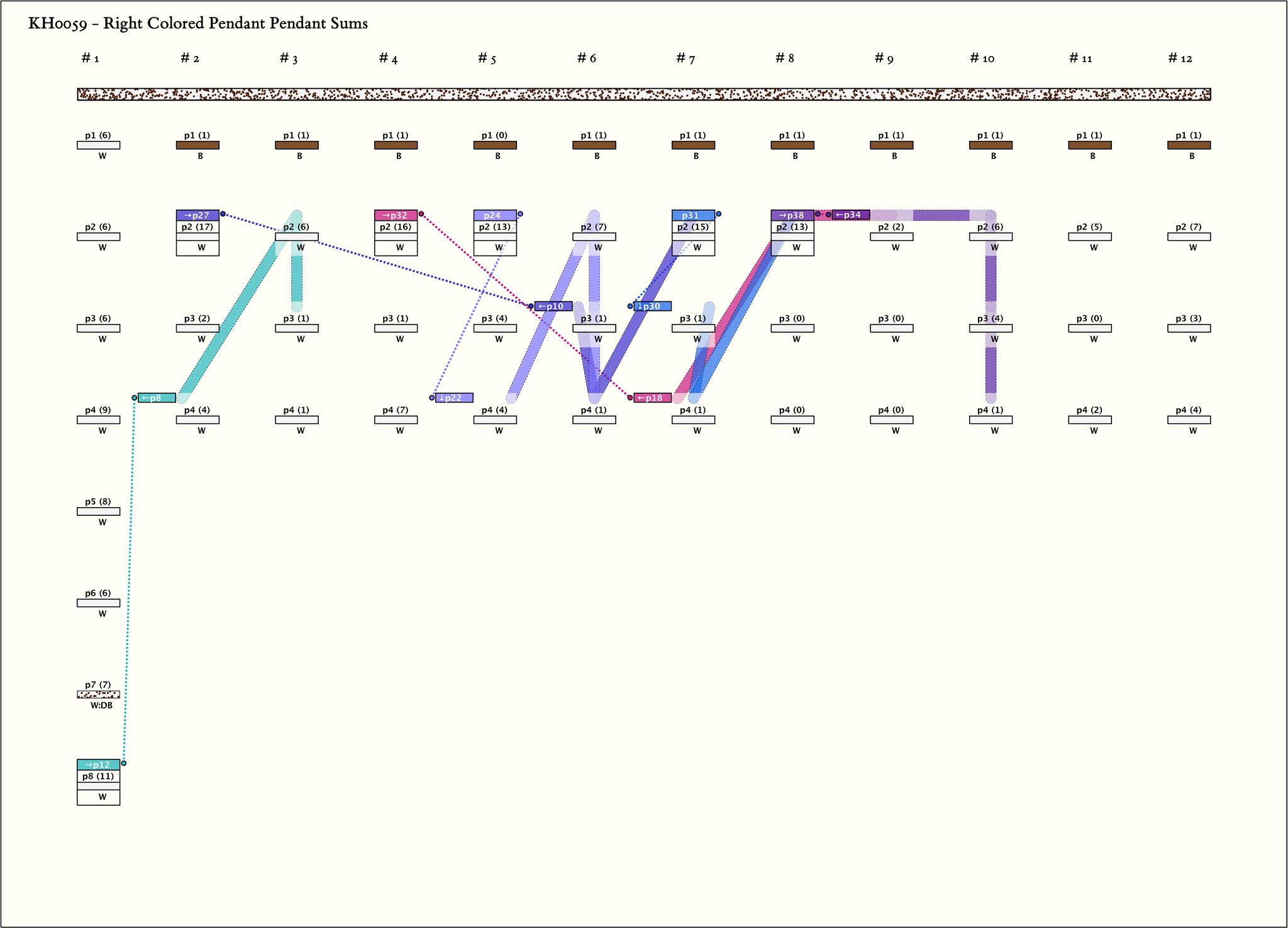 - The khipu has 12 groups by spacing. The last 11 groups each have 4 pendants and the same color pattern (B, W, W, W). For all 11 groups: