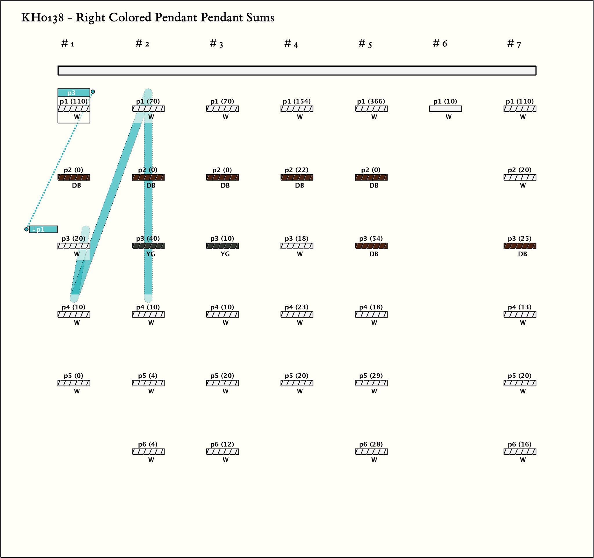 - Each group contains 5 or 6 pendants. In all groups, the first pendant and the last 3 pendants are W and, with the exception of the last group, the second pendant is DB.