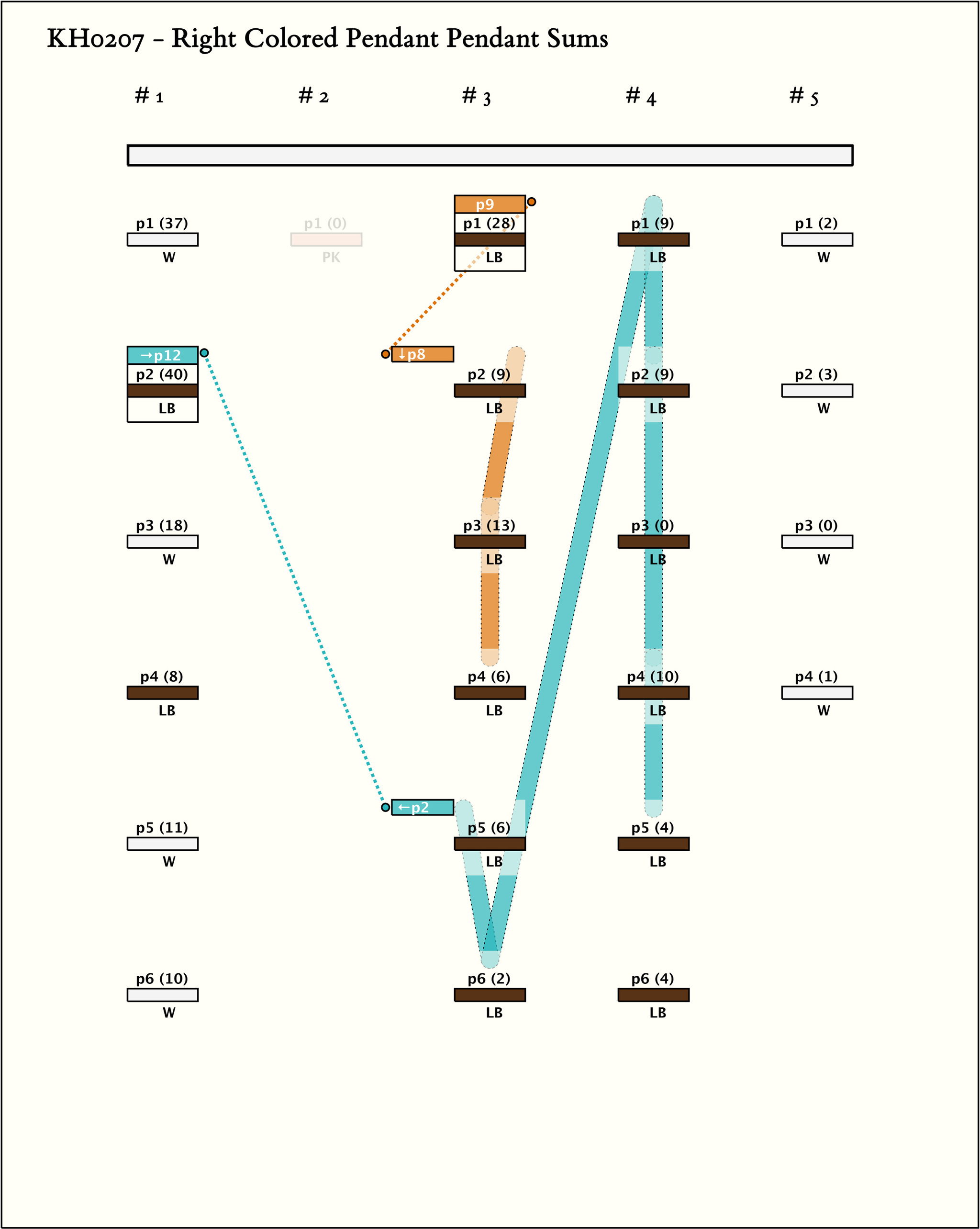 - Group 4 has all pendants W; groups 2 and 3 have all pendants LB; and group 1 has some of each color. There are no subsidiaries in group 1; all subsidiaries in group 2 are LB: W; and all subsidiaries in groups 3 and 4 are LB-W.