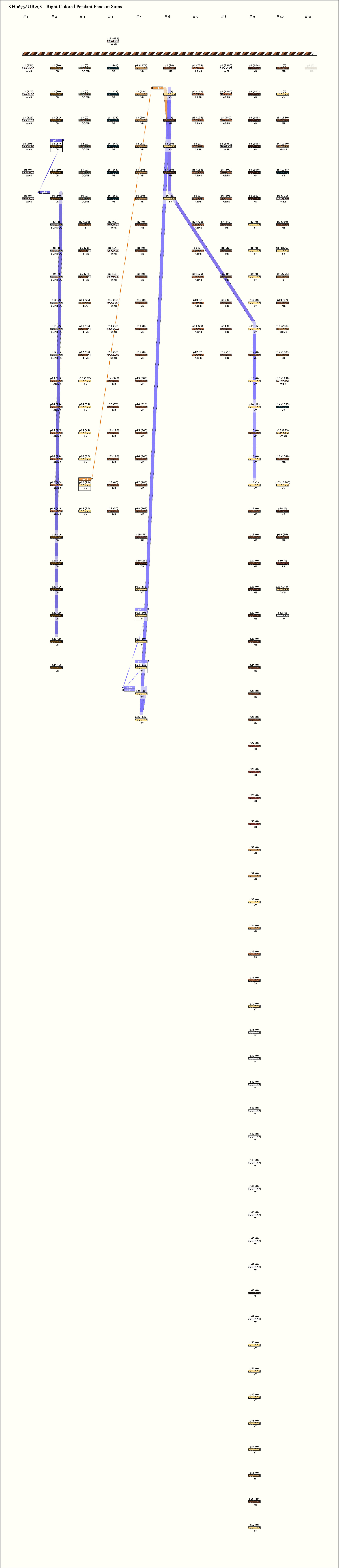 This khipu was transcribed by Ashok Khosla, from copies of notes left by Gary Urton at Dumbarton Oaks, and found by Mack FitzPatrick.