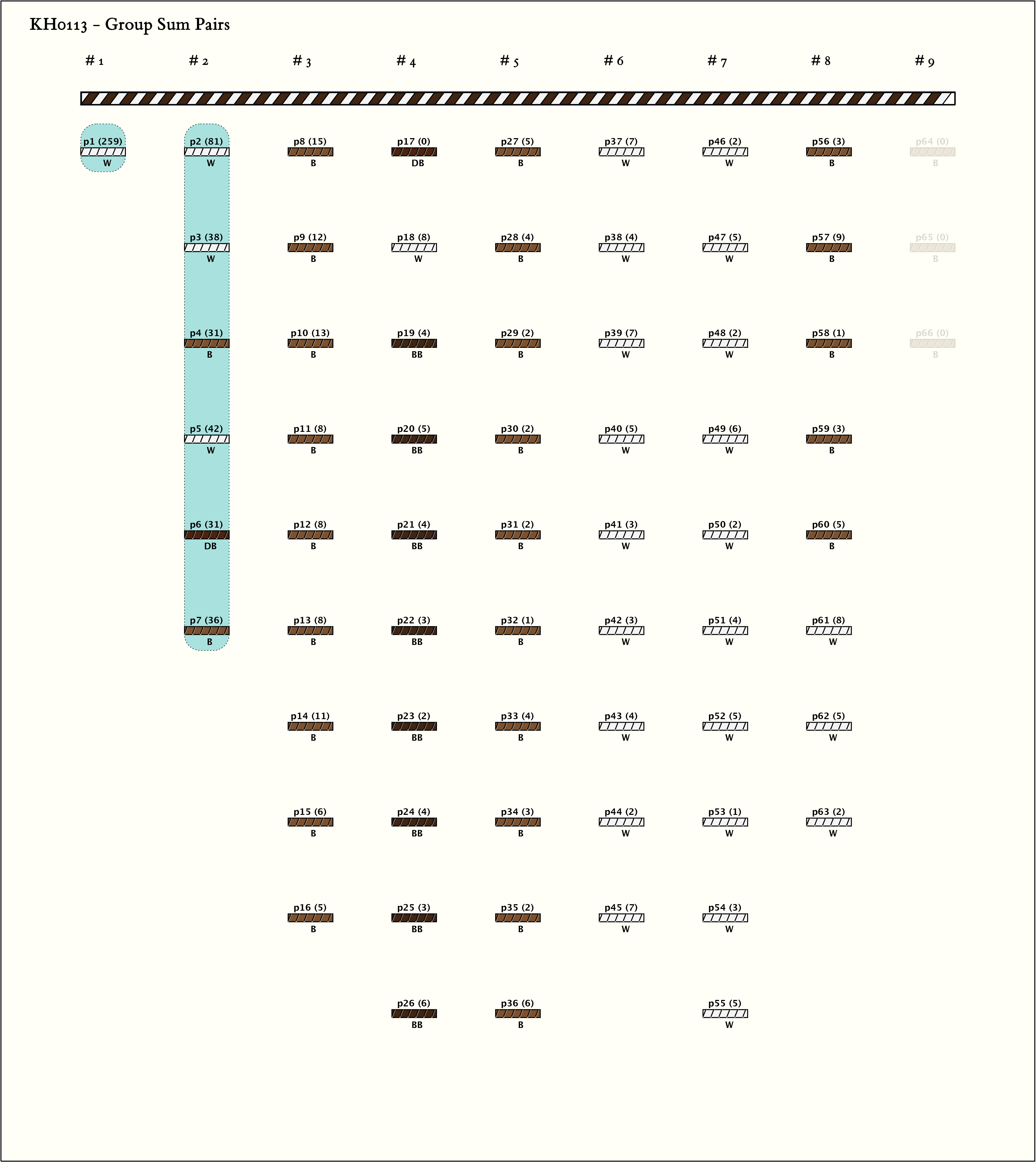 | 1 | ![]() | 259 | False | False | 1 | 1 | 2 | W@[0, 0]:259 + G0@[0, 0, 0]:365 | W@[1, 0]:81 + DB@[1, 0, 0]:54 + W@[1, 1]:38 + DB@[1, 1, 0]:60 + B@[1, 2]:31 + DB@[1, 2, 0]:61 + W@[1, 3]:42 + DB@[1, 3, 0]:60 + DB@[1, 4]:31 + DB@[1, 4, 0]:70 + B@[1, 5]:36 + DB@[1, 5, 0]:60 |