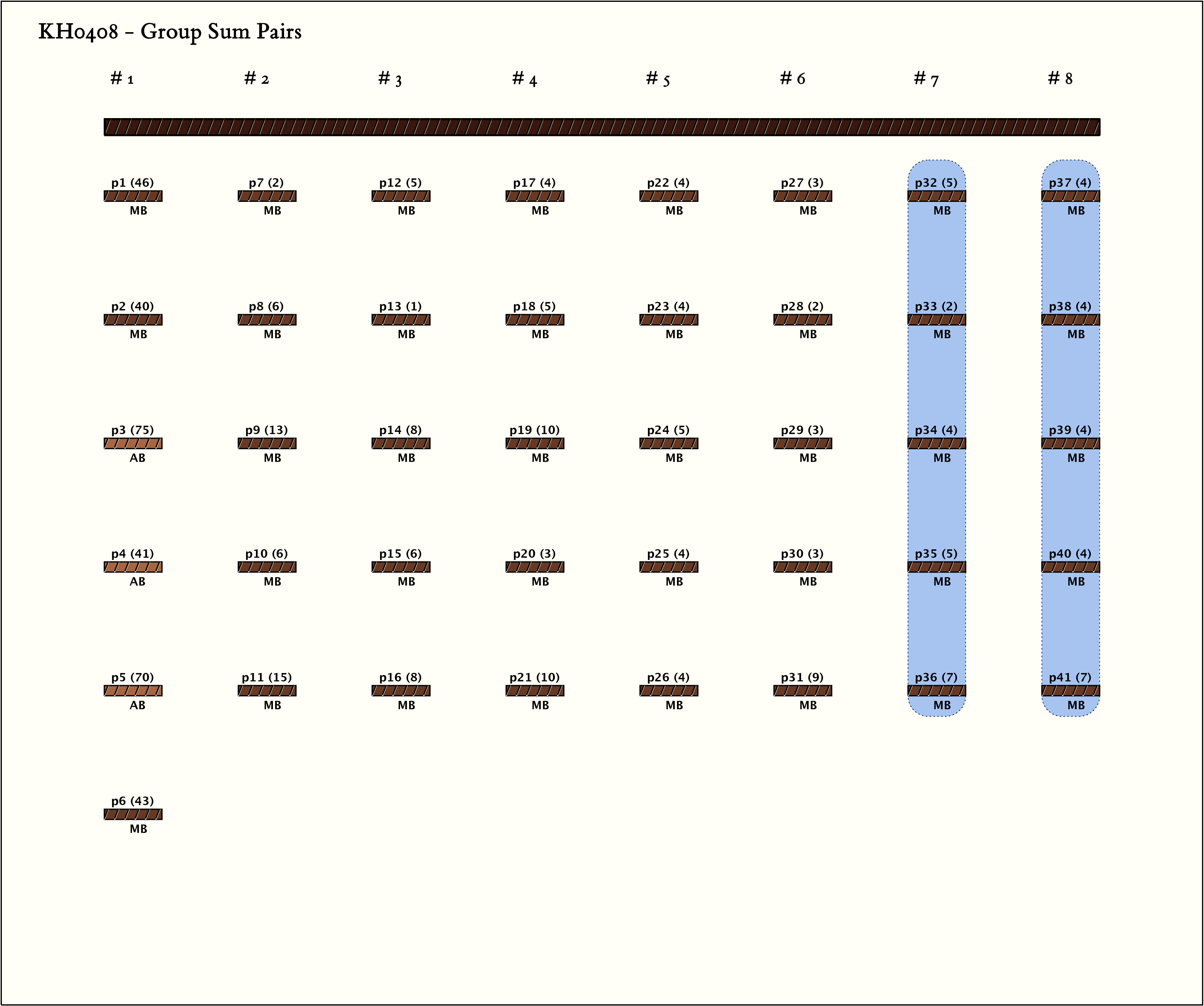 | 1 | ![]() | 23 | False | False | 1 | 7 | 8 | MB@[6, 0]:5 + CB@[6, 0, 0]:1 + W:MB@[6, 0, 1]:1 + MB@[6, 1]:2 + W:KB@[6, 1, 0]:1 + W-GG@[6, 1, 1]:0 + CB@[6, 1, 2]:1 + KB@[6, 1, 3]:1 + MB@[6, 2]:4 + W:KB@[6, 2, 0]:3 + HB@[6, 2, 1]:3 + KB@[6, 2, 2]:0 + MB@[6, 3]:5 + W:KB@[6, 3, 0]:2 + KB@[6, 3, 1]:1 + MB@[6, 4]:7 + W:KB@[6, 4, 0]:3 + HB@[6, 4, 1]:6 + KB@[6, 4, 2]:0 | MB@[7, 0]:4 + GG:MB@[7, 0, 0]:1 + KB@[7, 0, 1]:1 + MB@[7, 1]:4 + KB@[7, 1, 0]:1 + MB@[7, 2]:4 + GG:MB@[7, 2, 0]:2 + CB@[7, 2, 1]:3 + KB@[7, 2, 2]:2 + MB@[7, 3]:4 + HB@[7, 3, 0]:1 + CB@[7, 3, 1]:2 + KB@[7, 3, 2]:1 + MB@[7, 4]:7 + HB@[7, 4, 0]:1 + CB@[7, 4, 1]:5 + KB@[7, 4, 2]:1 |