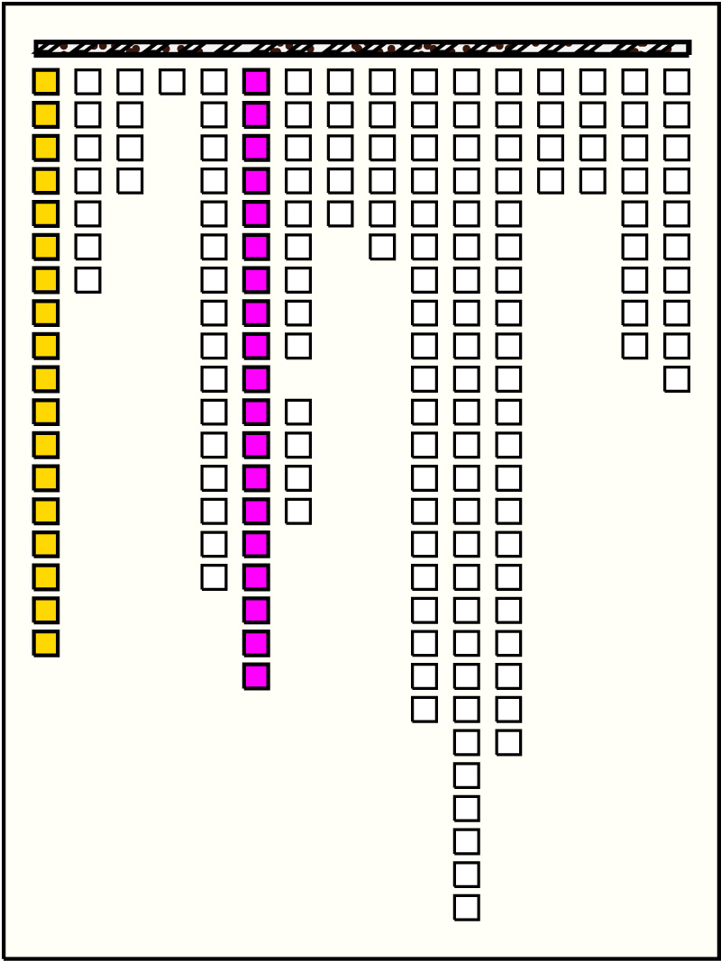 | 1 | ![]() | 65 | False | False | 5 | 1 | 6 | W@[0, 0]:7 + AB@[0, 1]:7 + HB@[0, 2]:12 + AB@[0, 3]:4 + W-YY@[0, 4]:2 + W-MB@[0, 5]:2 + AB-GG@[0, 6]:10 + W-MB@[0, 7]:2 + BG-HB@[0, 8]:3 + W:YY@[0, 9]:2 + HB@[0, 10]:2 + W:HB@[0, 11]:2 + W:HB@[0, 12]:2 + HB@[0, 13]:0 + AB@[0, 14]:5 + BL:AB:BD@[0, 15]:3 + BL@[0, 16]:0 + BL-AB@[0, 17]:0 | AB@[5, 0]:1 + AB@[5, 1]:2 + AB@[5, 2]:10 + LB@[5, 3]:1 + LB@[5, 4]:1 + LB@[5, 5]:10 + W@[5, 6]:1 + W@[5, 7]:1 + W@[5, 8]:10 + GG@[5, 9]:1 + GG@[5, 10]:1 + GG@[5, 11]:10 + BG@[5, 12]:1 + BG@[5, 13]:1 + BG@[5, 14]:5 + AB@[5, 15]:1 + AB@[5, 16]:1 + AB@[5, 17]:6 + MB@[5, 18]:1 |