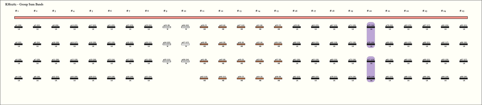 | 0 | ![]() | 019 | 3 | 42 = LK@[20, 1]:16 + LK@[20, 2]:26 | 42 = LK@[20, 3]:23 + LK@[20, 4]:19 |