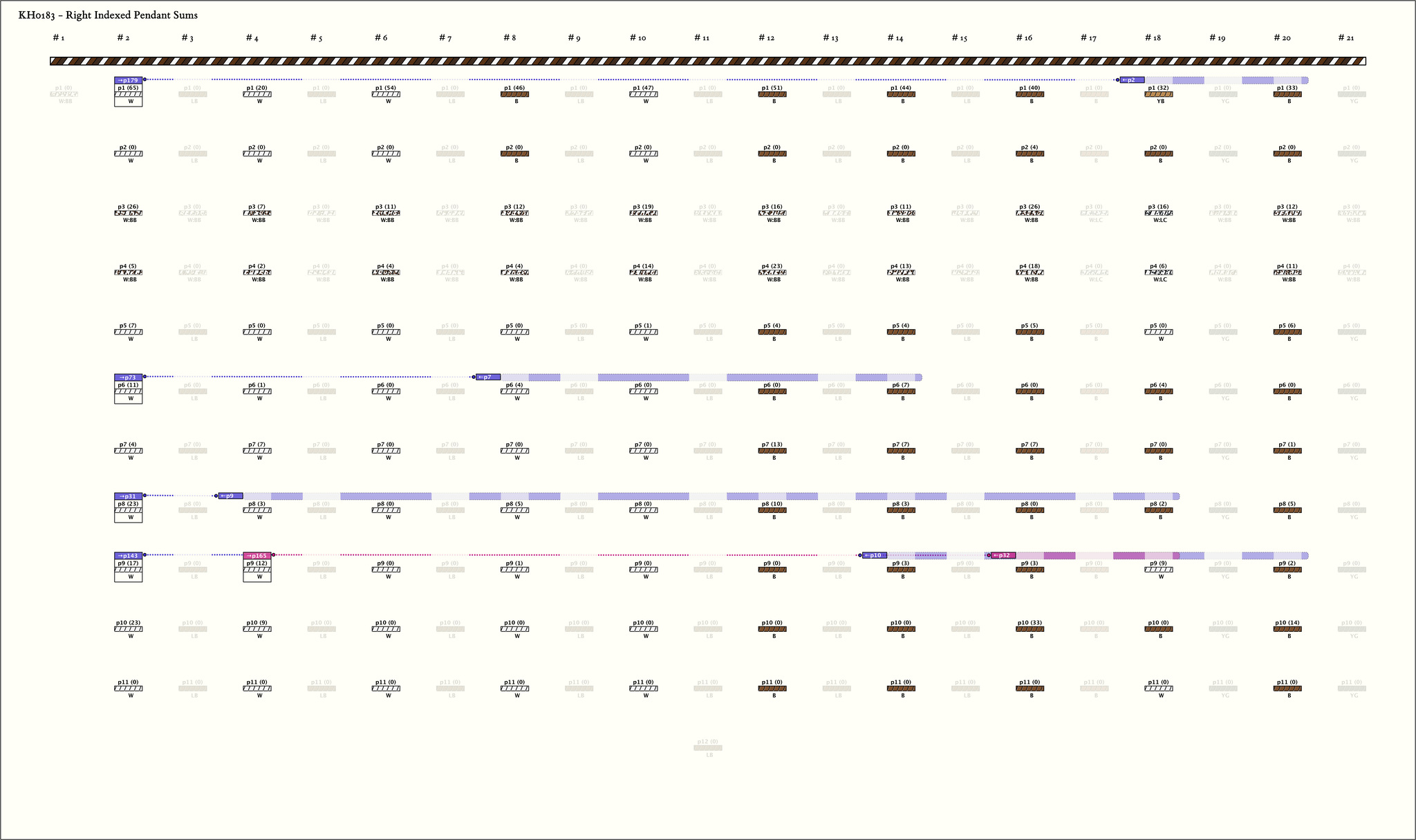 | 1 | ![]() | g2p1 : 65W | 65 | 2 | g18p1: 32YB + g20p1: 33B | |