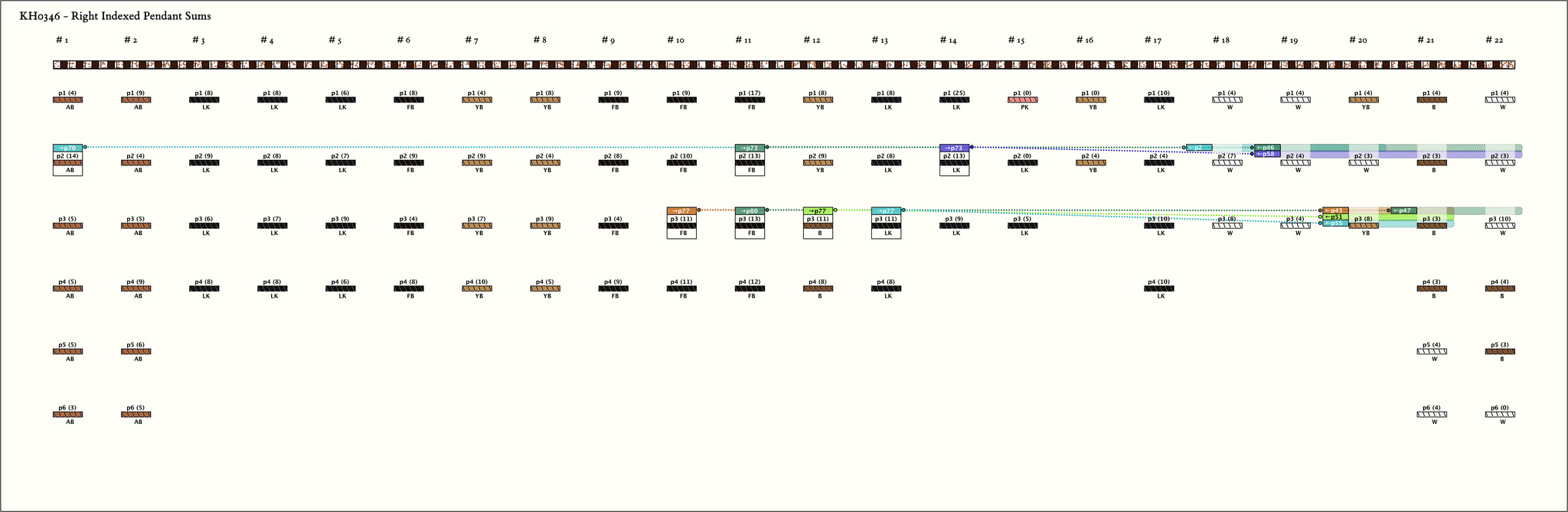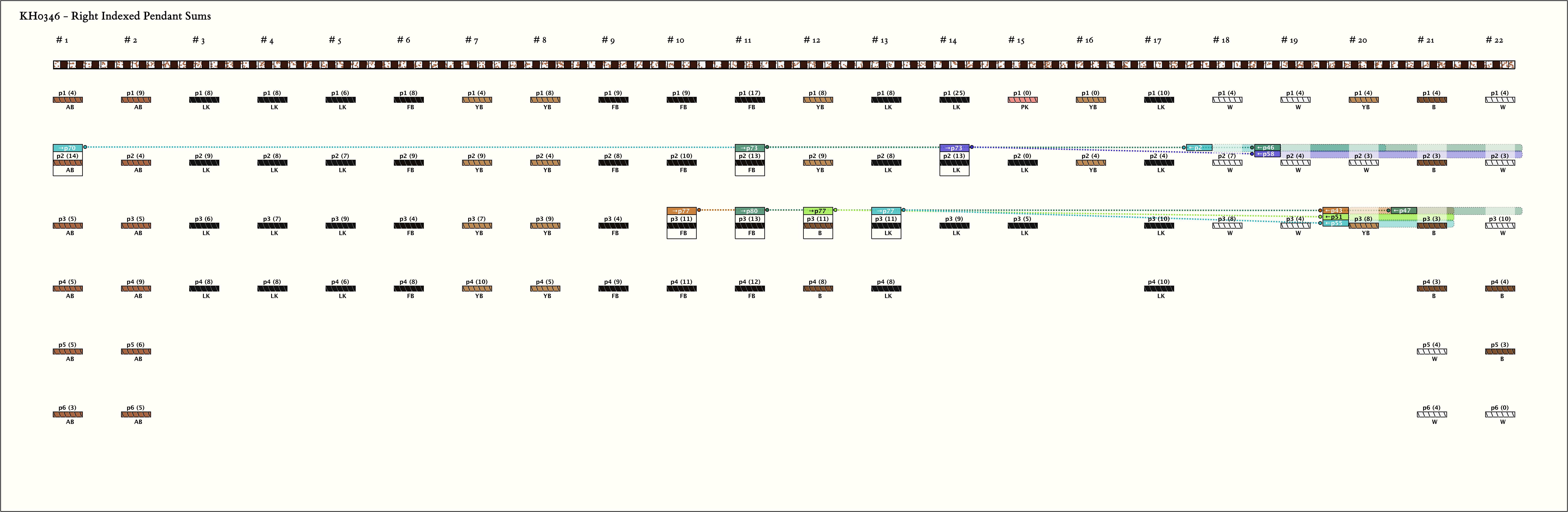 This khipu has been reconstructed using information from Jon Clindaniel's DASH thesis notes at Harvard. Cord cluster information is missing and has been defaulted to one cord per cluster.