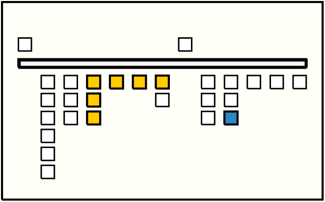 - Association by color gives one possible grouping while spacing gives another: by color groups of 4,3,7,3,1,2; by spacing groups of 6,3,3,6,3,2.