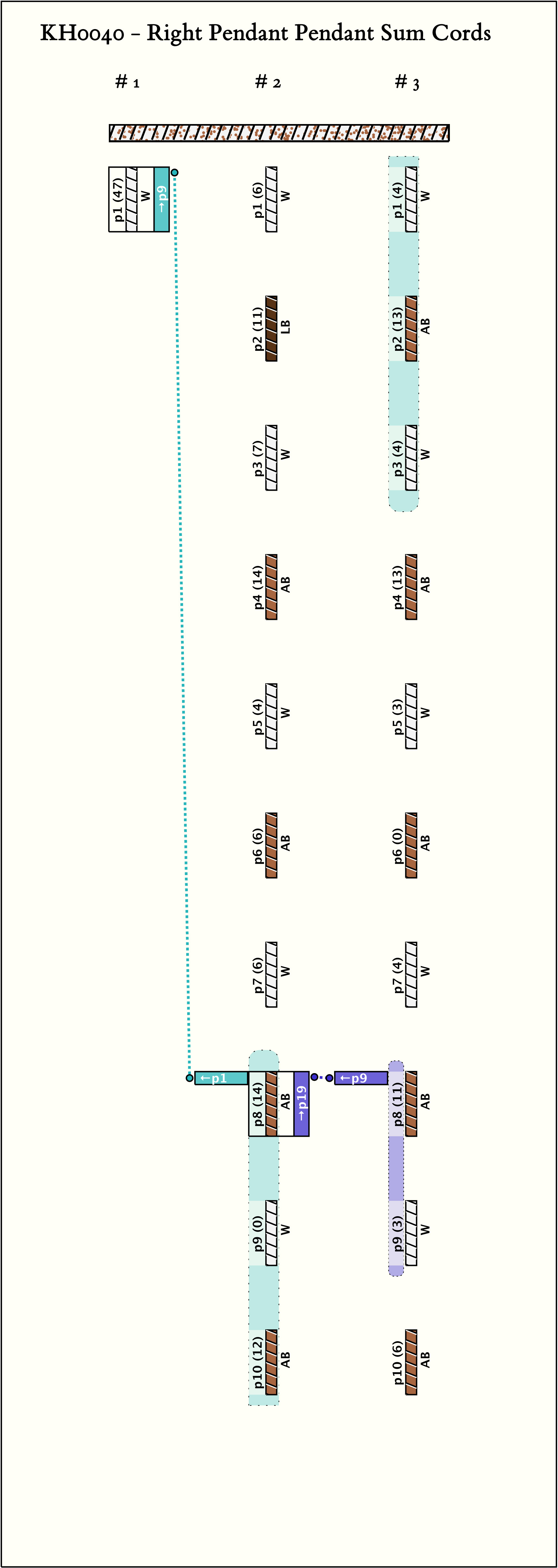 - With the exception of the cord dangling at the end of the main cord (P1), all values are 3-7 or 11-14.