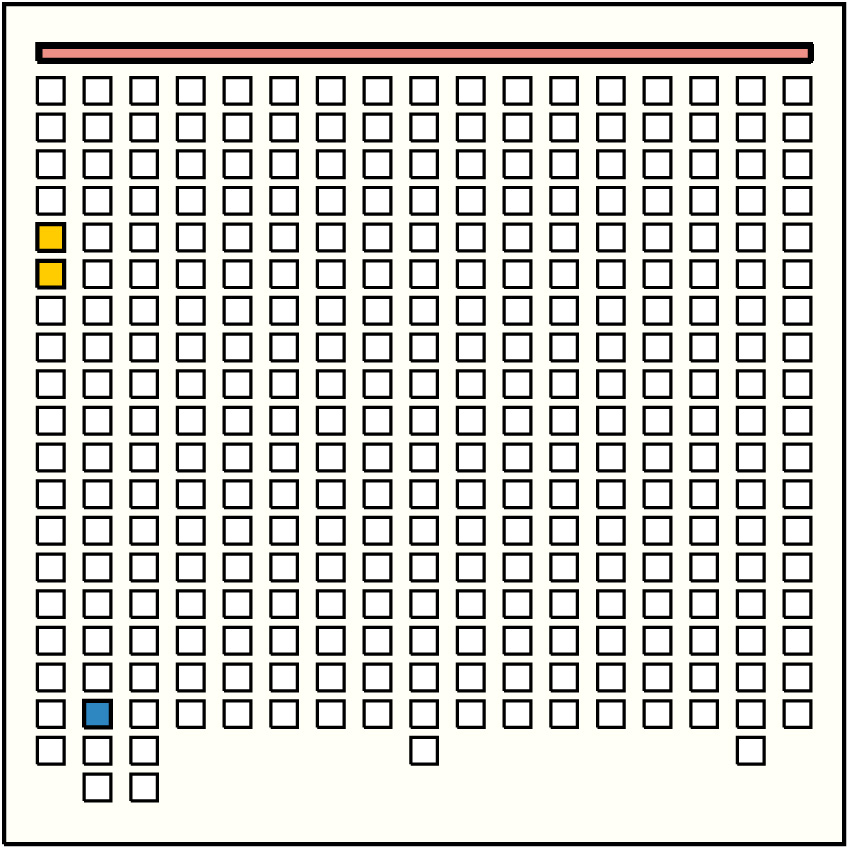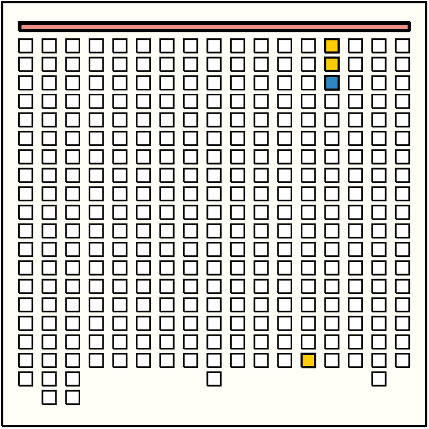 | 18 | ![]() | g7p3 : 231W:B | 231 | 14 | g14p3: 200W:B + g14p4: 0YB + g14p5: 0B + g14p6: 0B + g14p7: 0BG + g14p8: 10GY + g14p9: 0B + g14p10: 0B + g14p11: 0W + g14p12: 0W + g14p13: 0BD + g14p14: 11BD + g14p15: 0W-B + g14p16: 10B | |