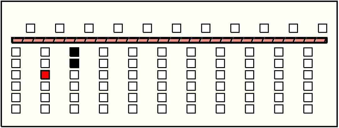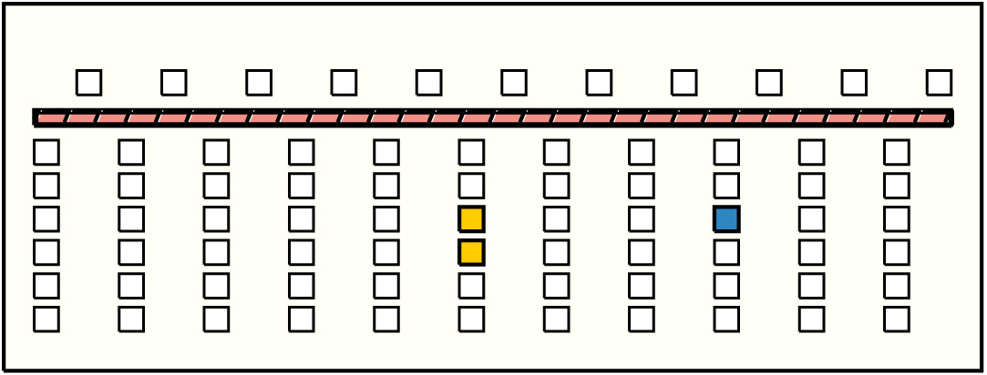 - Each group of 6 cords is separated from the next group by 1 cm;