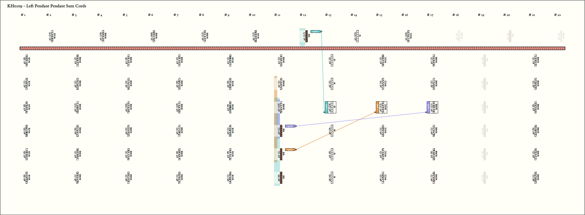 - Ascher gives no measurements for lengths of cords or fragments for khipu KH0109. To preserve the linearity of the khipu for database entry, cord lengths have been assigned arbitrarily with the following criteria:,