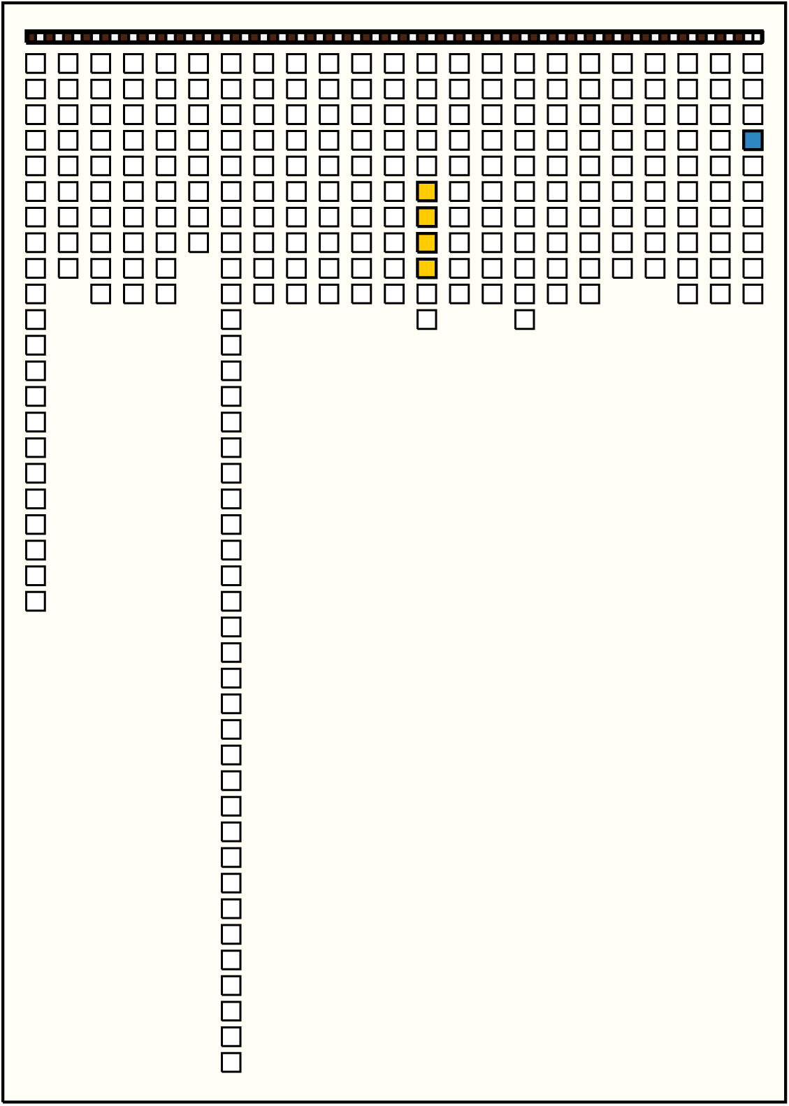 | 15 | ![]() | g13p11 : 70DB | 70 | 21 | g16p10: 6B:KB + g16p11: 0B:KB + g17p1: 3BS + g17p2: 3BS + g17p3: 3BS + g17p4: 4BS + g17p5: 4BS + g17p6: 4BS + g17p7: 4BS + g17p8: 7BS + g17p9: 3BS + g17p10: 0BS + g18p1: 3B + g18p2: 3B + g18p3: 4B + g18p4: 3B + g18p5: 3B + g18p6: 4B + g18p7: 3B + g18p8: 3B + g18p9: 3B | |