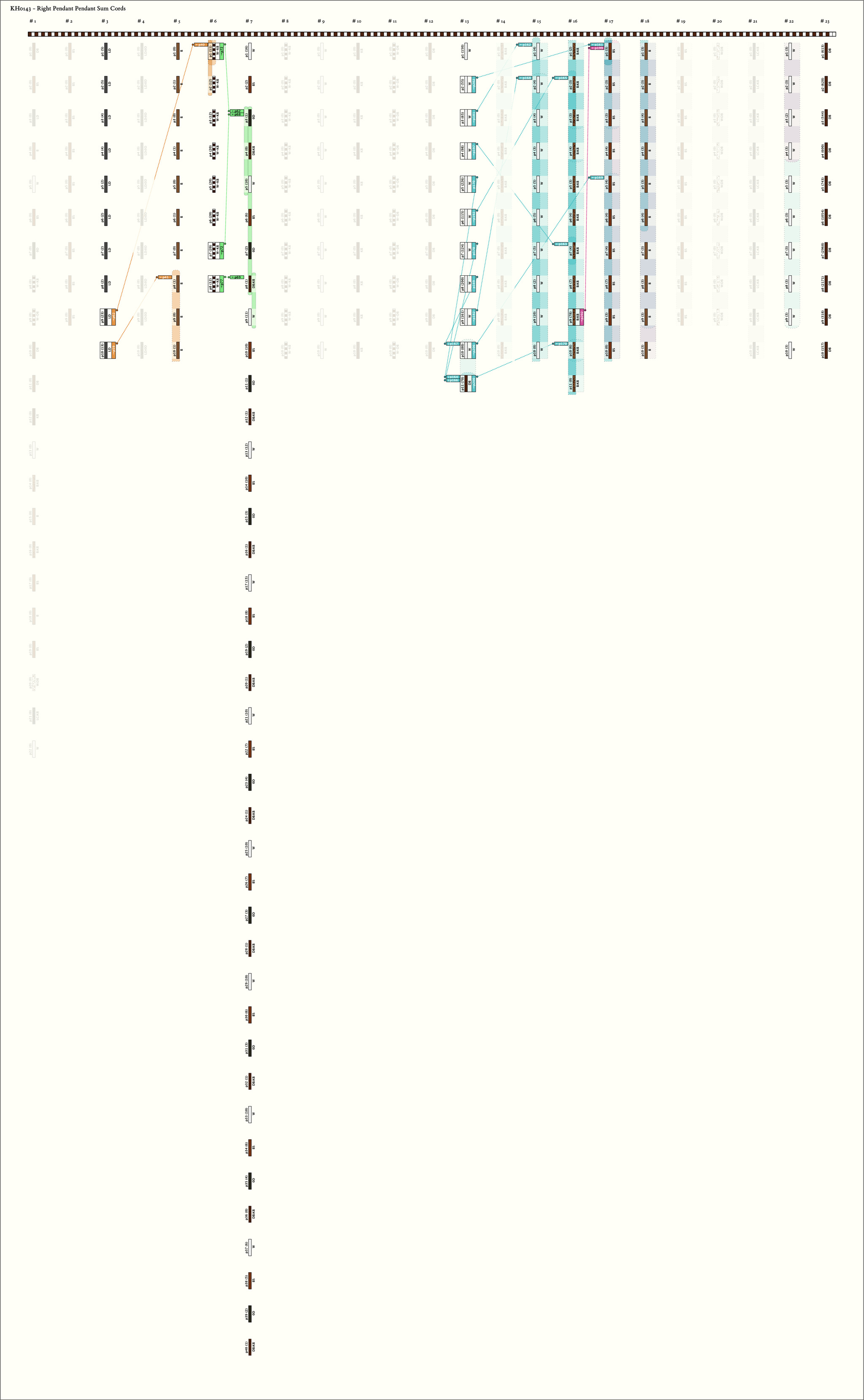- The 40 pendants in part 3 repeat the color pattern W, BS, 0D, DB:KB 10 times. The only subsidiaries are on the BS colored pendant and all are DB:W. For each of the 10 sets of 4 pendants, the values have the same relative magnitude: W > BS > 0D ≥ DB:KB.
