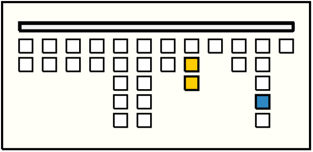 - By spacing, the first part is separated into 2 sets of 2 pairs, then 2 groups of 5 pendants each, and then another pair. The first 2 pairs alternate in color: W, MB, W, MB. The rest of the pendants (with the exception of the last one) are W with an MB subsidiary.
