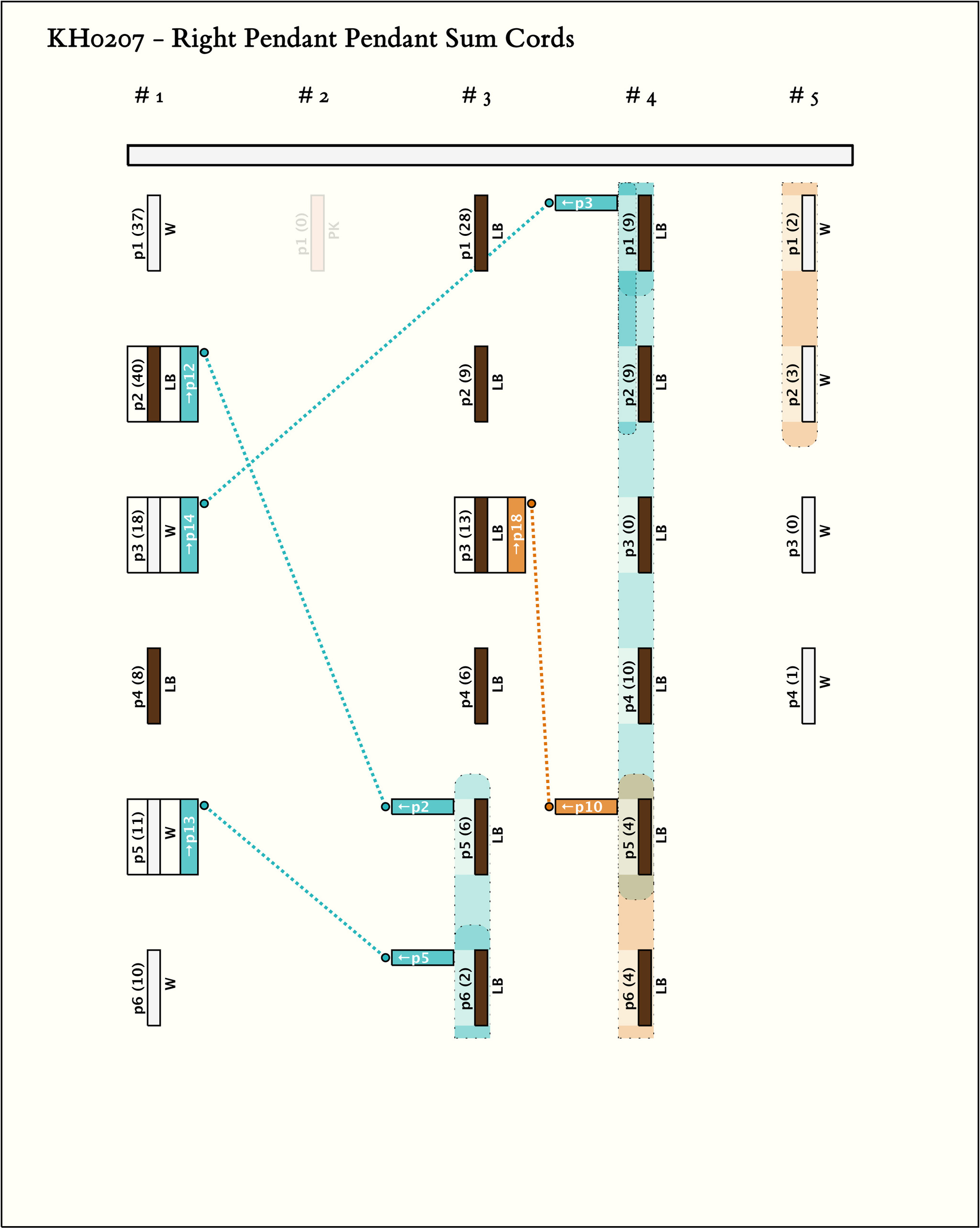 - Group 4 has all pendants W; groups 2 and 3 have all pendants LB; and group 1 has some of each color. There are no subsidiaries in group 1; all subsidiaries in group 2 are LB: W; and all subsidiaries in groups 3 and 4 are LB-W.