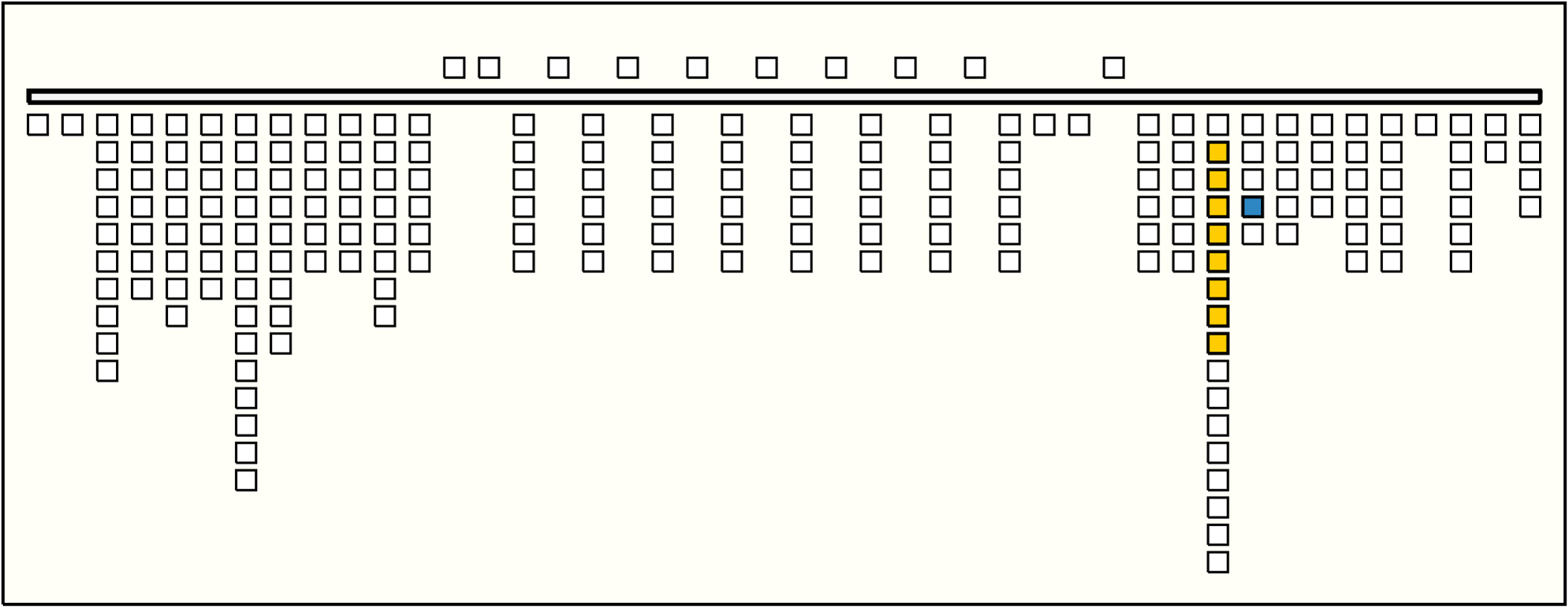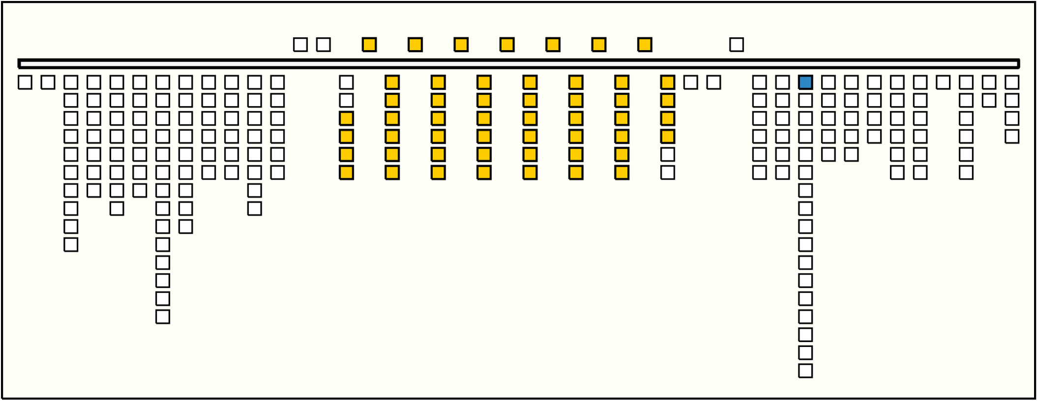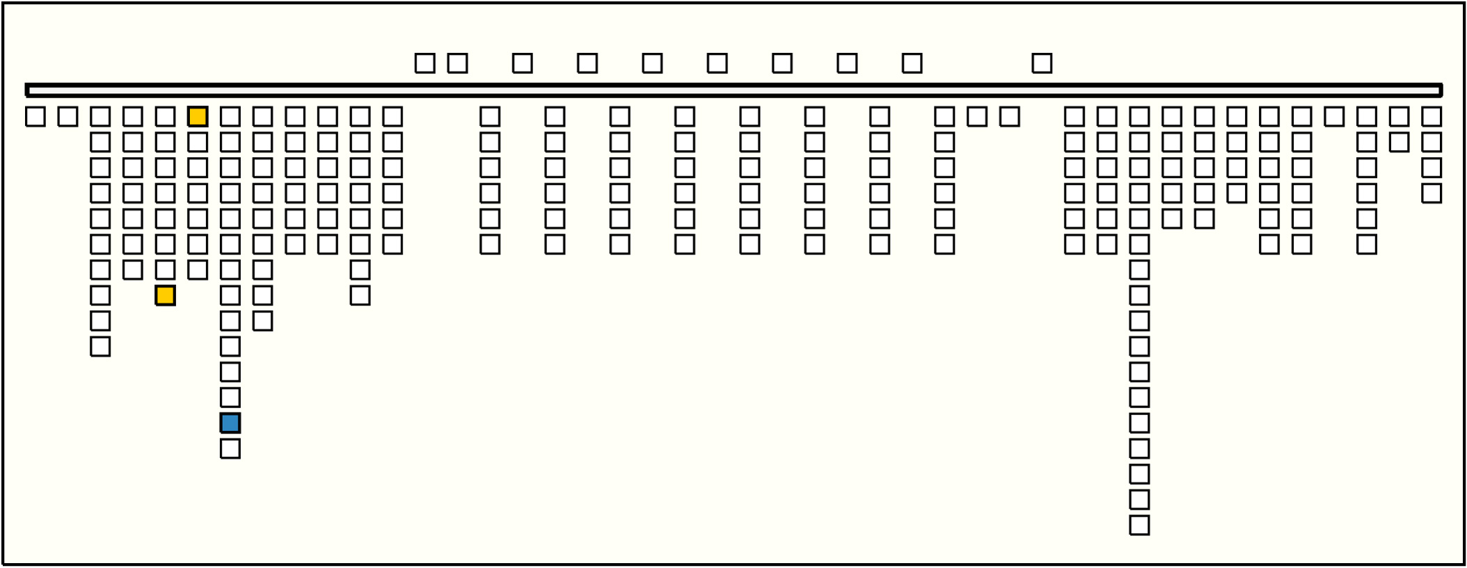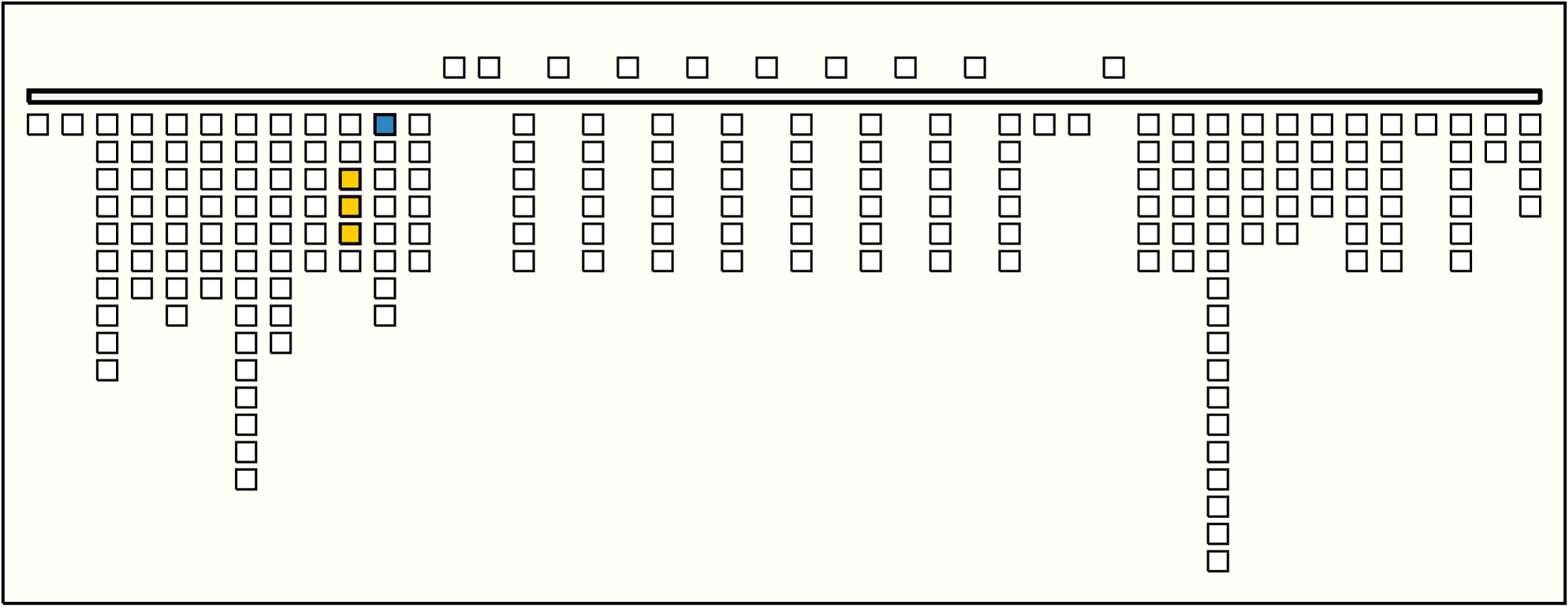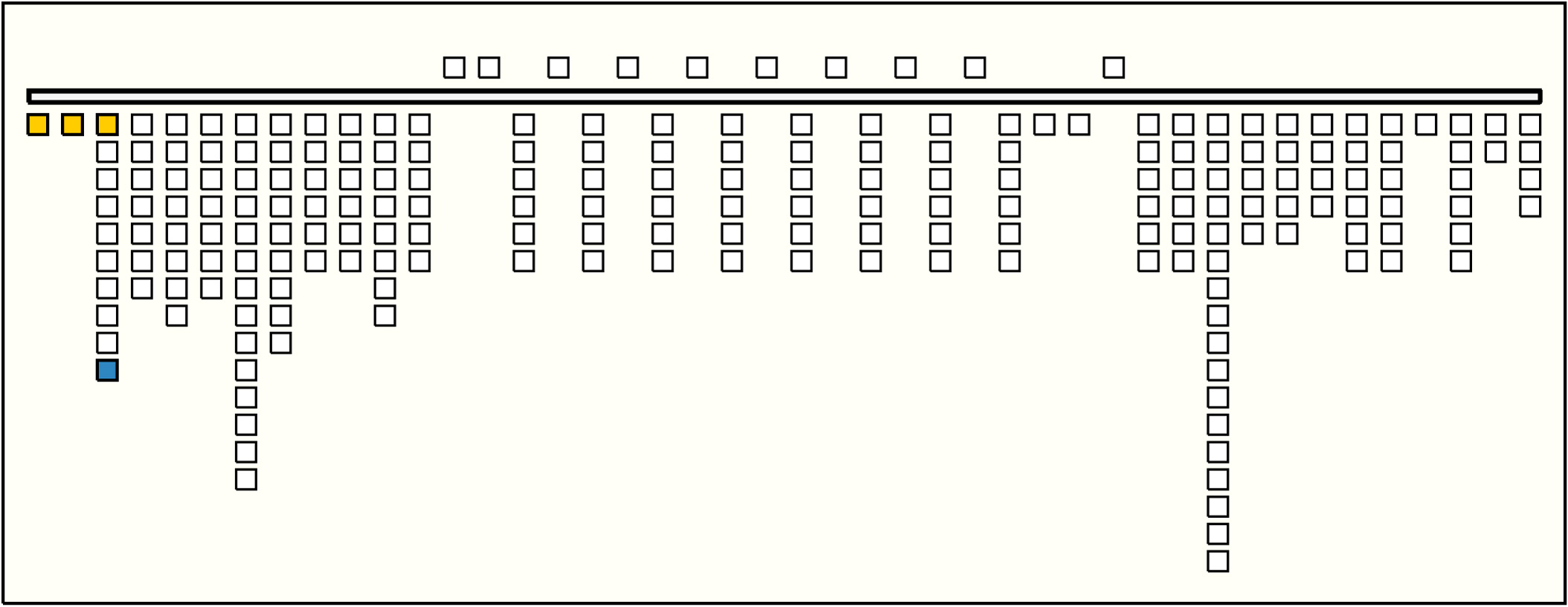 | 7 | ![]() | g12p4 : 79W:YB | 79 | 10 | g7p10: 7YB:MB + g7p11: 0YB:MB + g7p12: 0YB:MB + g7p13: 12YB:MB + g7p14: 10YB:MB + g8p1: 10MB:KB + g8p2: 10MB:KB + g8p3: 10MB:KB + g8p4: 10W:KB + g8p5: 10W:KB | |
