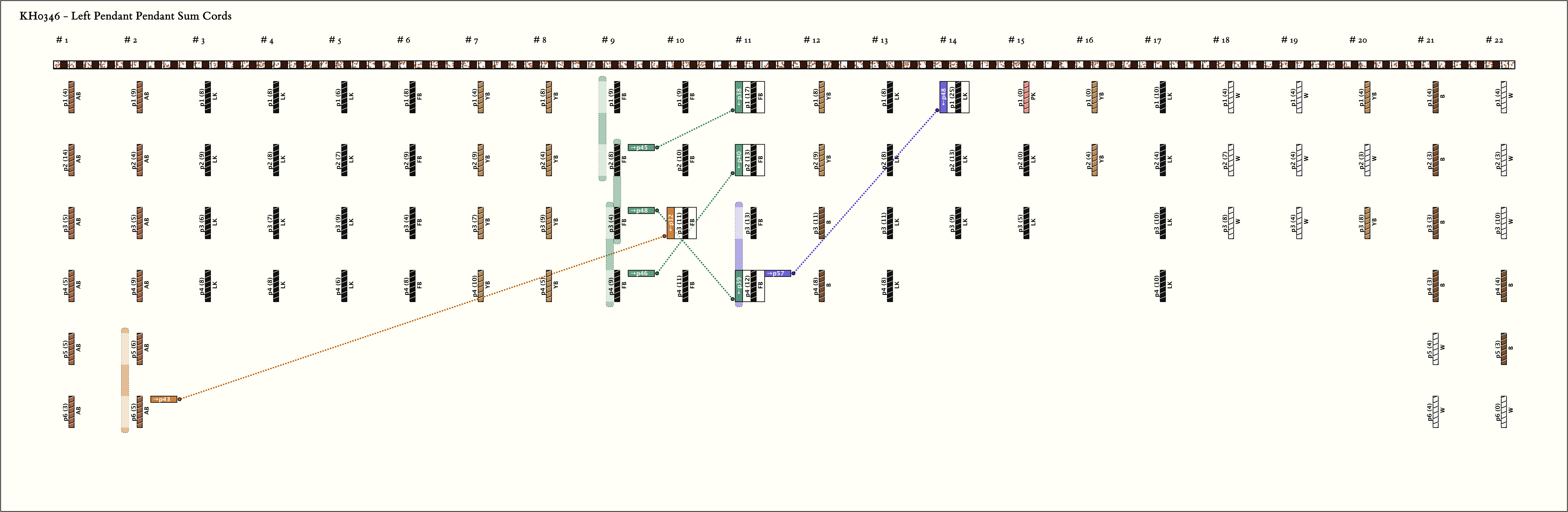 This khipu has been reconstructed using information from Jon Clindaniel's DASH thesis notes at Harvard. Cord cluster information is missing and has been defaulted to one cord per cluster.