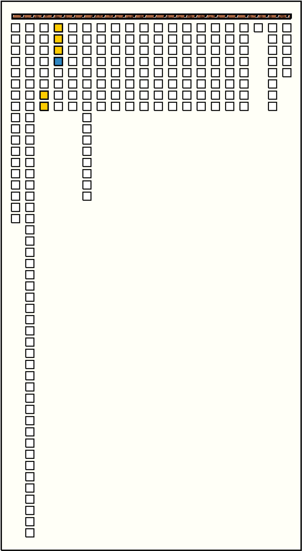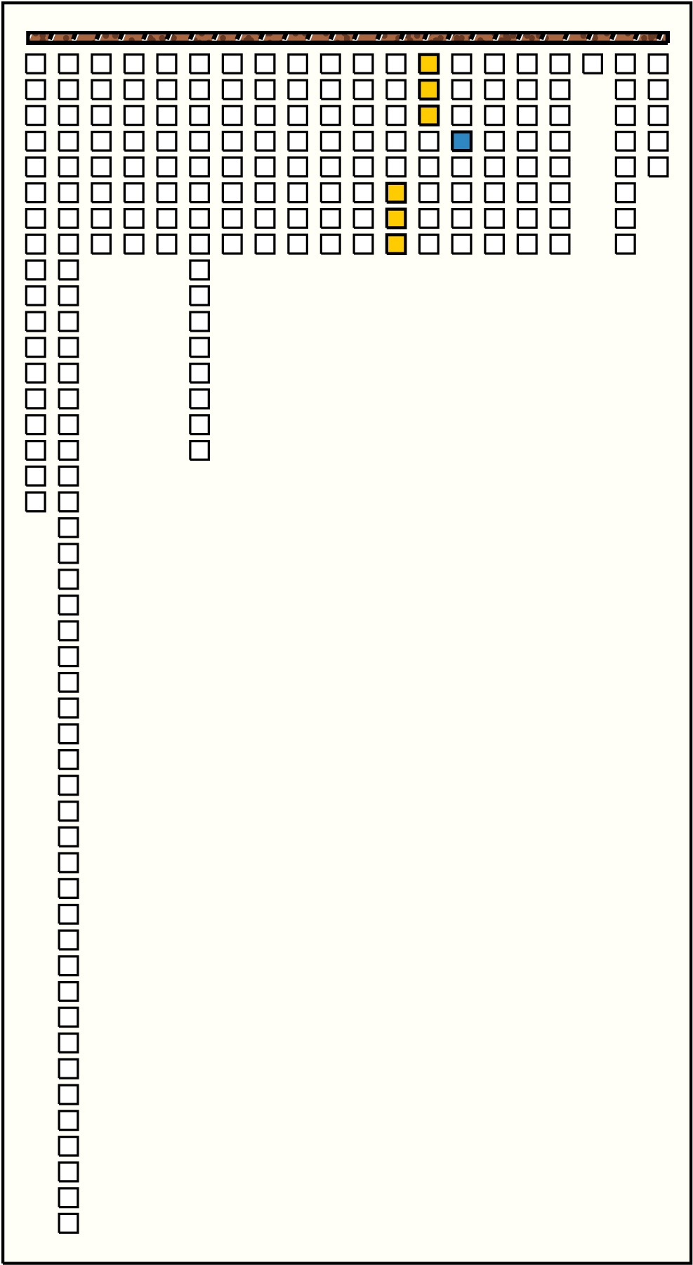 | 15 | ![]() | g16p4 : 32W:AB | 32 | 13 | g12p7: 4W:AB + g12p8: 1W:AB + g13p1: 2AB + g13p2: 2AB + g13p3: 3AB + g13p4: 11AB + g13p5: 0AB + g13p6: 0AB + g13p7: 0AB + g13p8: 1AB + g14p1: 4W:AB + g14p2: 1W:AB + g14p3: 3AB | |