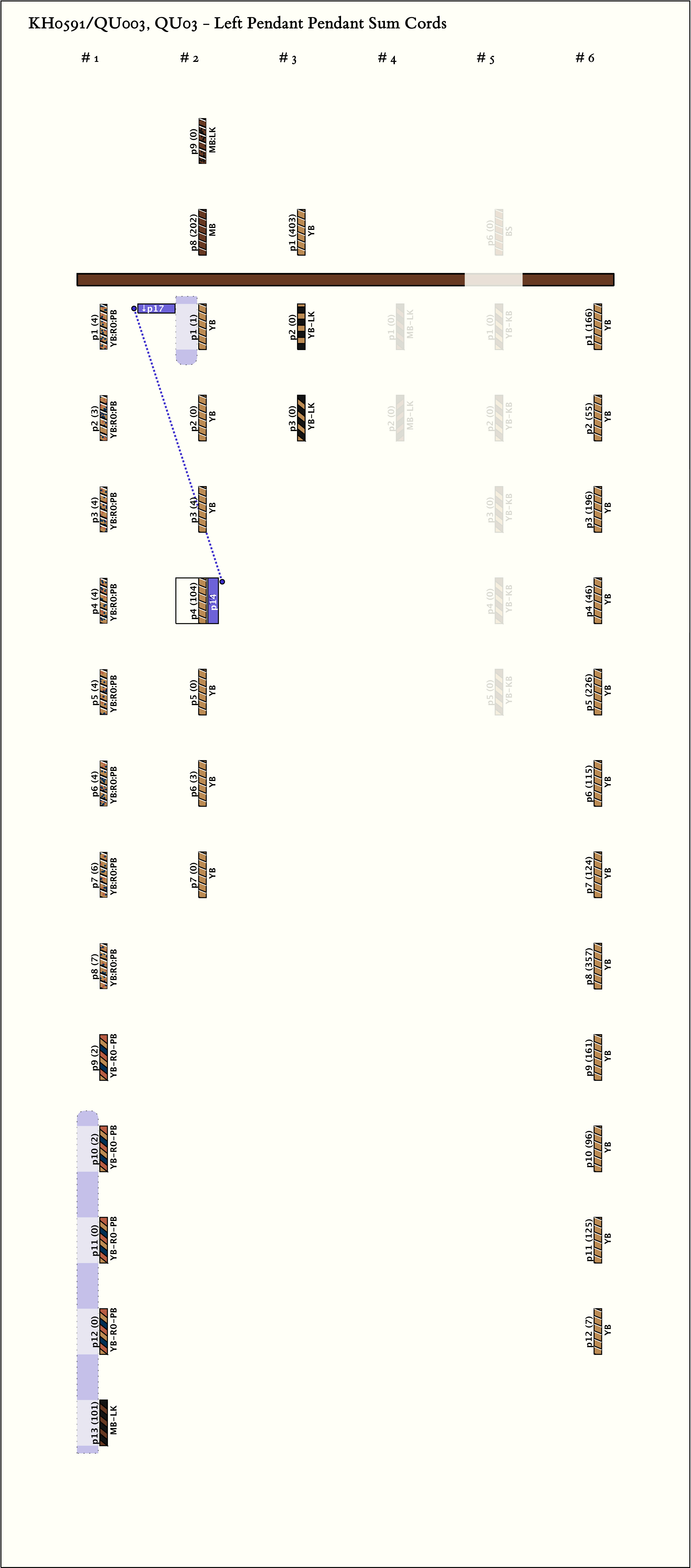 Group 1 knot total = 140; Grp 2 = 112 with 202 top cord; then another top cord with no context at 403; Grp 3=?; Group 4 = null; Grp 5 =1674.