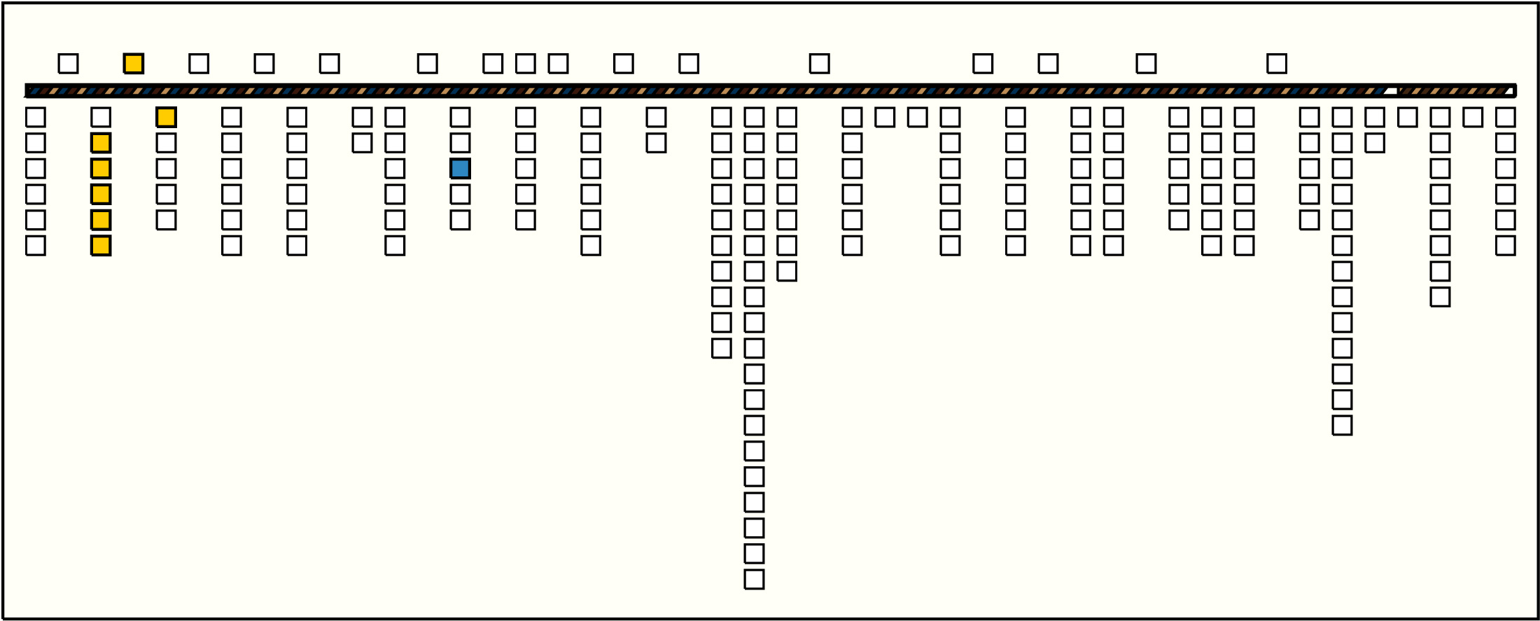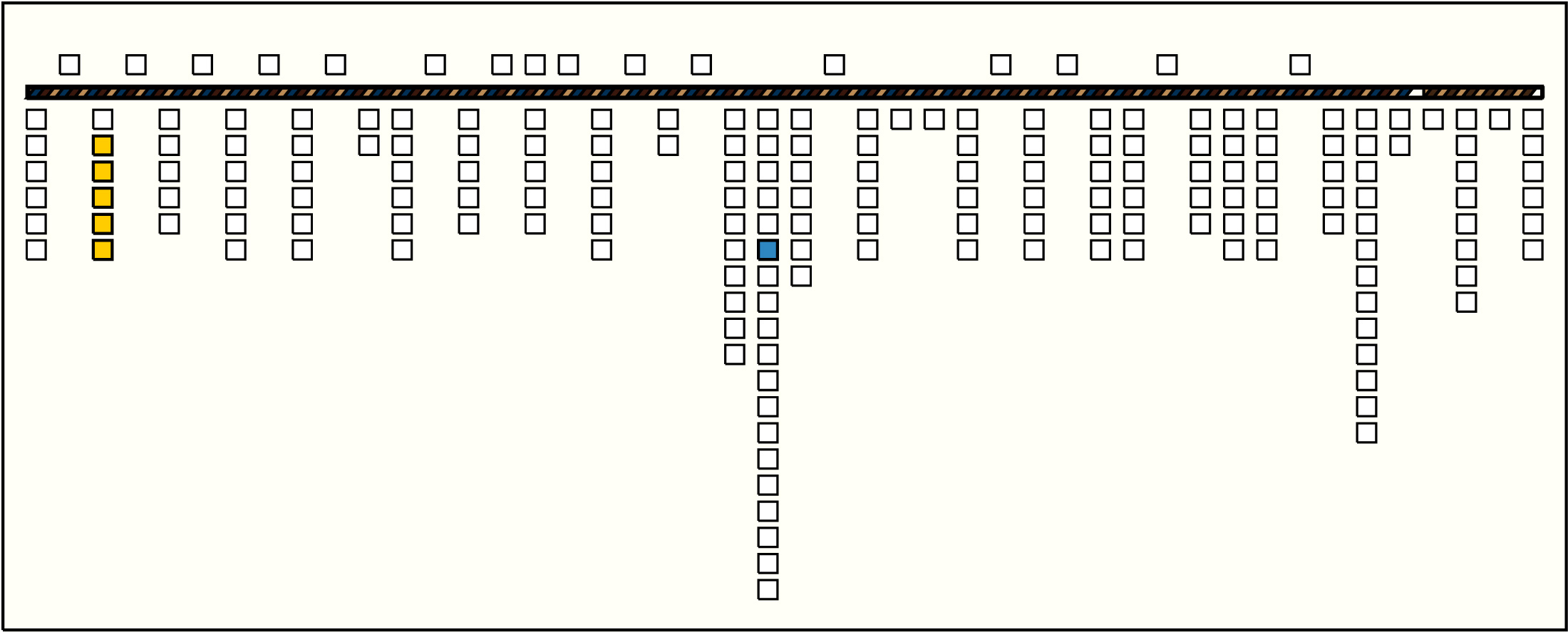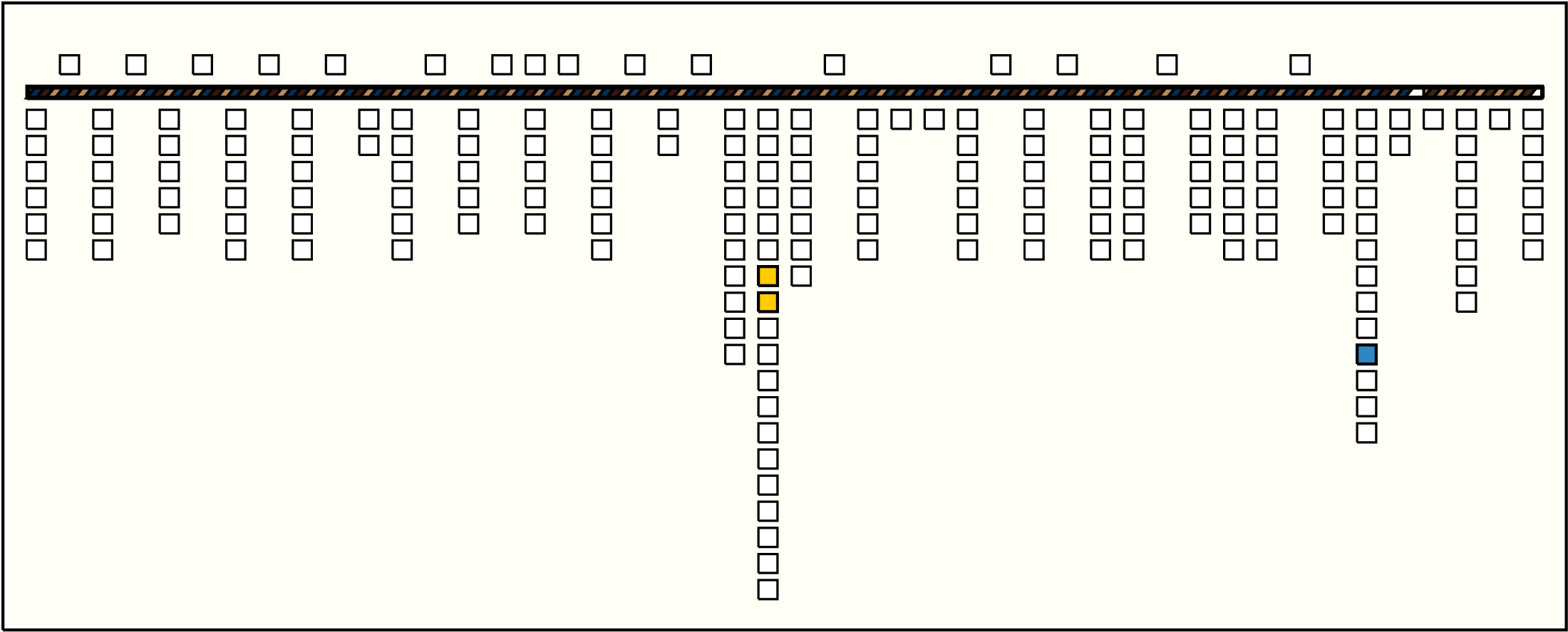 | 18 | ![]() | g27p1 : 100BS | 100 | 12 | g24p4: 4YB:BS + g24p5: 0YB:BS + g24p6: 0YB:BS + g24p7: 0YB:BS + g25p1: 0YB + g25p2: 0YB + g25p3: 0YB + g25p4: 0YB + g25p5: 0YB + g26p1: 6YB + g26p2: 0MB + g26p3: 90MB | |