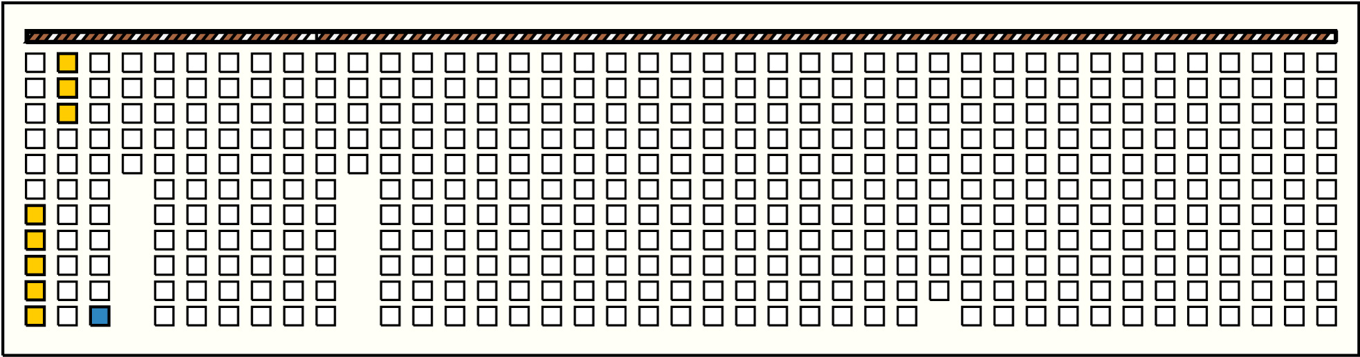 | 60 | ![]() | g25p6 : 70YB | 70 | 10 | g25p7: 20KB + g25p8: 10KB + g25p9: 0KB + g25p10: 0KB + g25p11: 0KB + g26p1: 0W + g26p2: 0W + g26p3: 10W + g26p4: 10W + g26p5: 20W | |