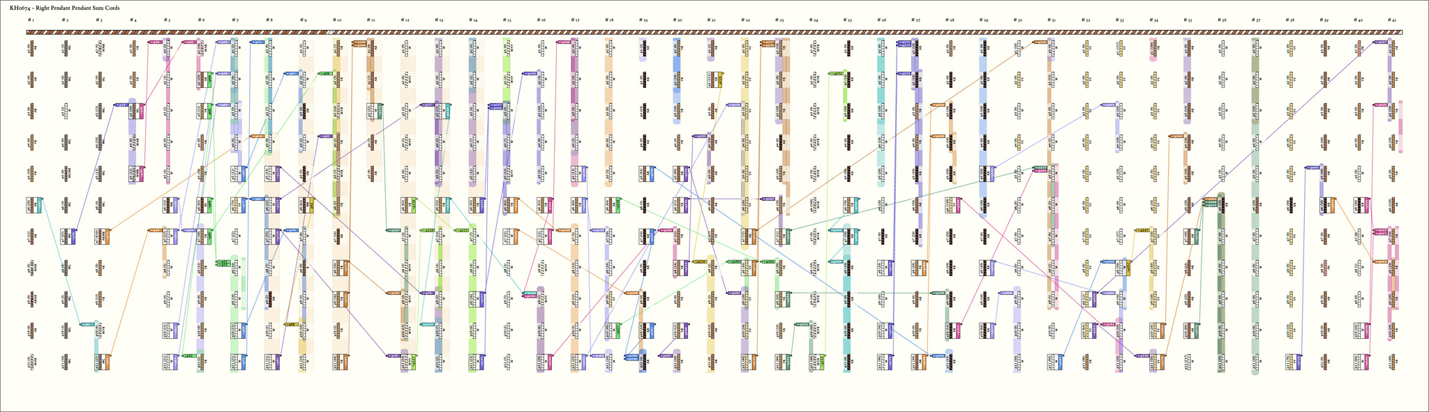 This khipu was transcribed by Ashok Khosla, from copies of notes left by Gary Urton at Dumbarton Oaks, and found by Mack FitzPatrick.