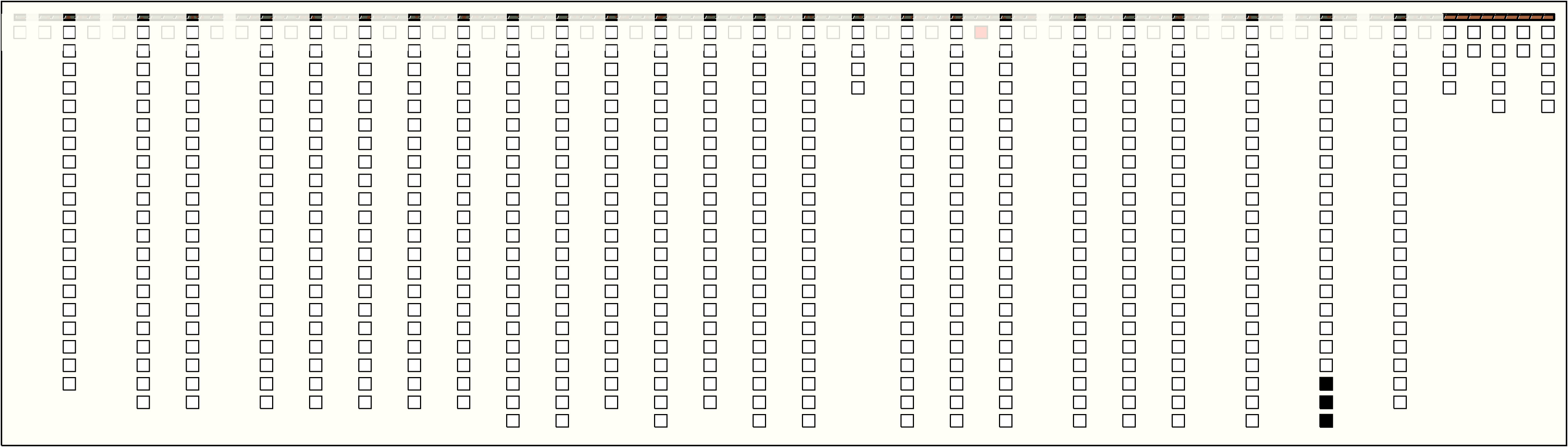 | 5 | ![]() | g12p1s8 : 521GG | 521 | 122 | g13p8: 7RB + g13p10: 1AB + g13p11: 1AB:RB + g13p12: 10RB + g13p13: 3MB + g13p14: 7AB + g13p15: 3AB:RB + g13p16: 2RB + g13p17: 2KB + g13p21: 14AB:KB + g15p8: 1MB + g15p12: 3MB + g15p14: 1AB + g15p15: 1AB:MB + g15p16: 1KB + g15p17: 18MB + g15p19: 2AB:GG + g15p20: 1MB + g17p4: 1RB + g17p6: 1AB + g17p12: 3MB + g17p13: 1MB + g17p14: 3AB + g17p16: 8MB + g17p17: 9KB + g17p19: 8AB:GG + g17p20: 3KB + g17p21: 1AB:KB + g19p2: 1AB + g19p6: 2AB + g19p10: 6AB + g19p11: 1MB + g19p12: 1MB + g19p14: 1AB + g19p16: 13MB + g19p17: 9MB + g19p19: 7AB:GG + g19p20: 6MB + g19p21: 2AB:MB + g21p3: 2AB + g21p5: 2MB + g21p6: 2VR + g21p7: 2MB + g21p8: 3AB + g21p9: 3MB + g21p10: 9MB + g21p11: 3MB + g21p12: 2AB + g21p13: 1AB + g21p14: 12MB + g21p15: 1MB + g21p16: 6AB + g21p17: 1MB + g21p18: 6MB + g21p19: 9KB + g21p22: 19AB:GG + g23p3: 2MB + g23p5: 2MB + g23p8: 2AB + g23p10: 3MB + g23p12: 1AB + g23p13: 1MB + g23p14: 4MB + g23p15: 1MB + g23p16: 1AB + g23p19: 21KB + g23p20: 2MB + g23p21: 5KB + g23p22: 1AB:GG + g25p2: 2MB + g25p4: 2MB + g25p6: 1MB + g25p8: 1MB + g25p9: 3MB + g25p11: 3MB + g25p12: 1MB + g25p13: 13MB + g25p15: 3MB + g25p18: 10MB + g25p19: 9MB + g25p20: 10KB + g25p21: 5AB:GG + g27p3: 2AB + g27p5: 1MB + g27p6: 2VR + g27p8: 2AB + g27p10: 1MB + g27p11: 2MB + g27p12: 10AB + g27p13: 1MB + g27p14: 7MB + g27p15: 1MB + g27p16: 1AB + g27p18: 6MB + g27p19: 10KB + g27p20: 5MB + g27p21: 15MB + g27p22: 5AB:GG + g29p2: 2MB + g29p5: 1VR + g29p6: 1MB + g29p7: 2MB + g29p8: 2MB + g29p9: 8MB + g29p10: 1MB + g29p12: 2MB + g29p13: 9MB + g29p14: 2MB + g29p15: 5MB + g29p16: 1MB + g29p17: 2MB + g29p18: 7MB + g29p21: 14AB:GG + g31p3: 2MB + g31p5: 1MB + g31p10: 3MB + g31p12: 2MB + g31p14: 3MB + g31p16: 2MB + g31p17: 1MB + g31p19: 16KB + g31p20: 4AB:MB | |