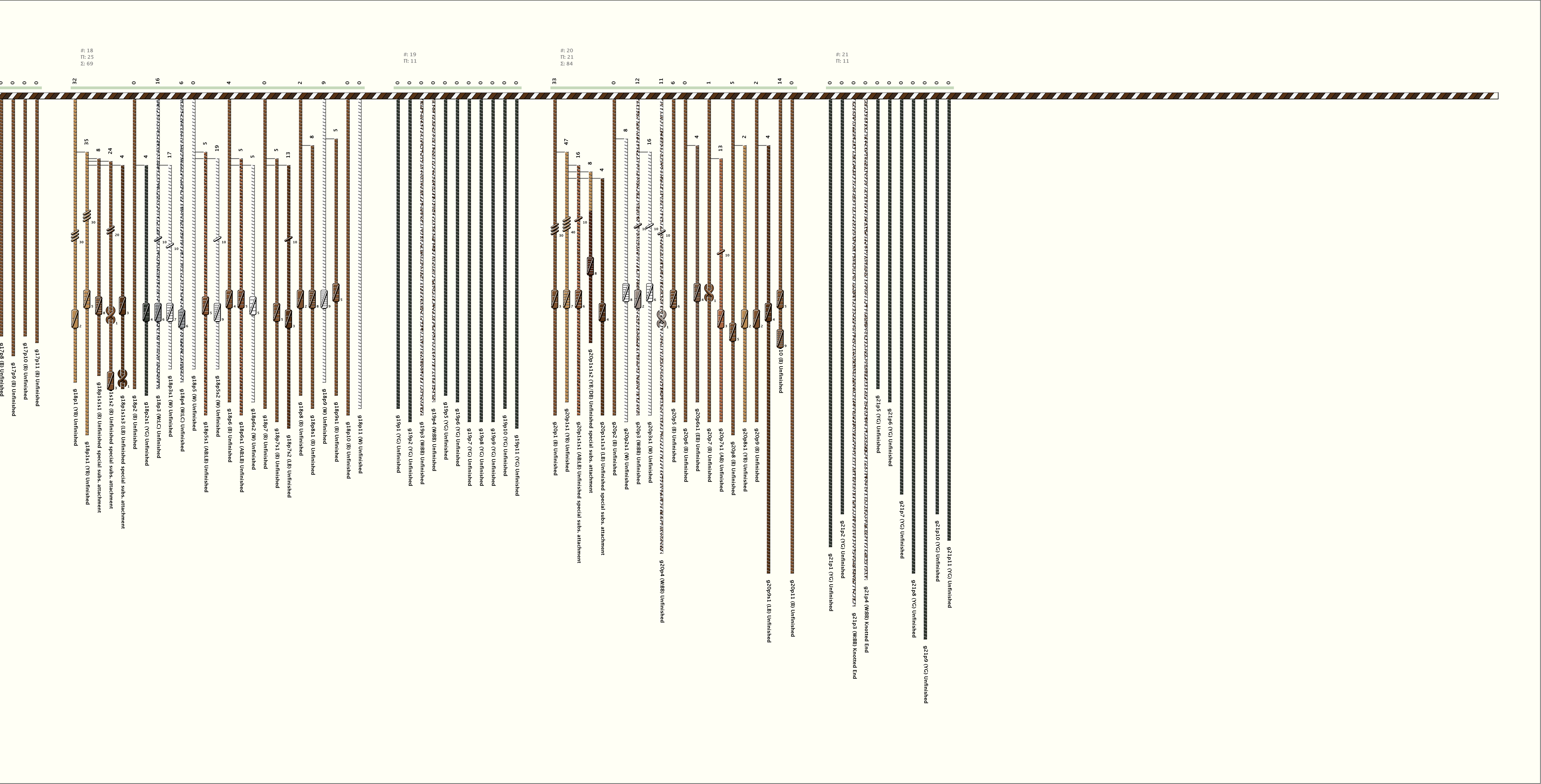 # of Groups & Cords: 21 Groups, 362 Cords - (222p, 140s) # of Ascher Cord Colors: 21 Similar Khipu: Previous (KH0111) Next (KH0162) Catalog: KH0183 Khipu Notes: Khipu Notes |