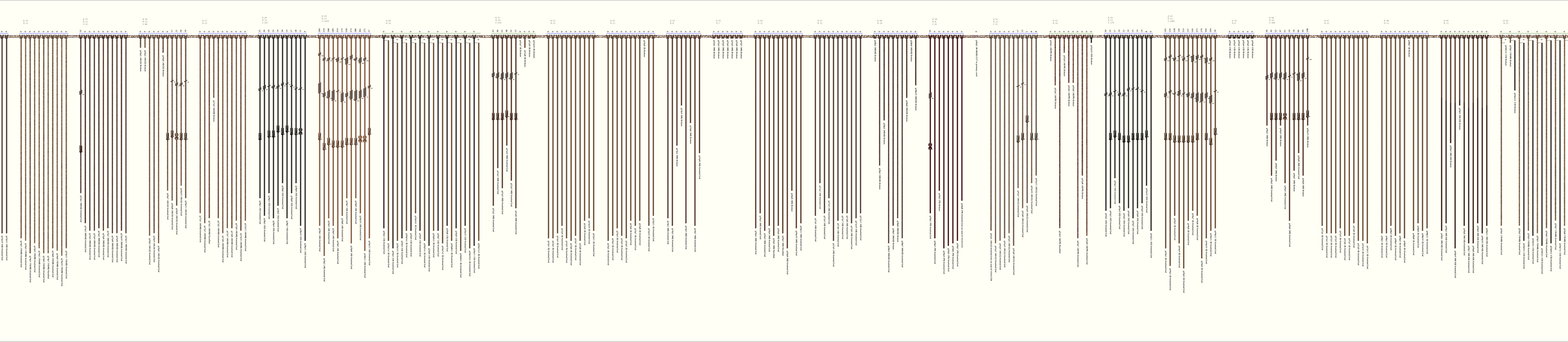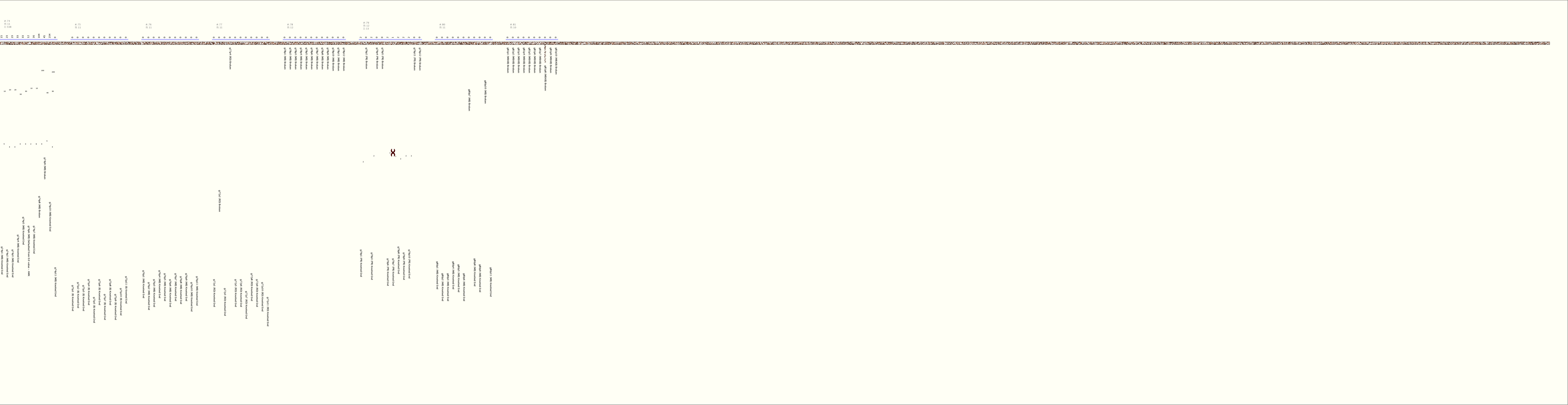 # of Groups & Cords: 81 Groups, 955 Cords - (865p, 90s) # of Ascher Cord Colors: 27 Similar Khipu: Previous (KH0379) Next (KH0380) Catalog: KH0468 Khipu Notes: |