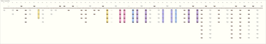 - All pendant cords within a group are the same color with the exception of group 18 noted above and groups 16, 20, and 23 in which the first 4 pendants are one color and the last 4 another color.