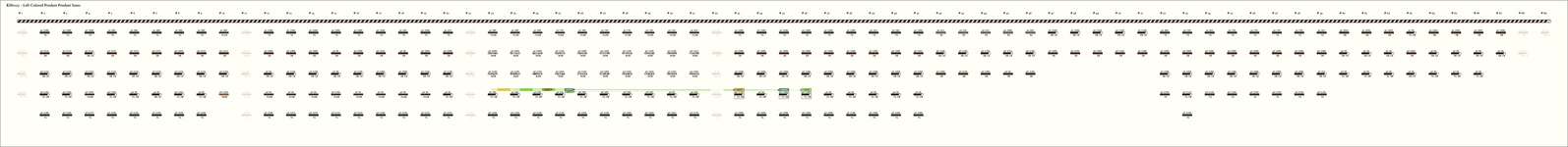 - In part 1, with the exception of 2 pendants in the 10th group, each group has the 5 color pattern: YB, DB, DB-CB, DB-YG, YG. Where there are only 4 pendants in a group, it is the last position that is non-existent. The color pattern for part 2 is the same as for part 1 except that in the 4th position, the color is DB:YB instead of DB-YG. All groups in part 3 have the pattern: DB:YG, DB:W, DB:W, DB-YG, YG. Part 4 has the same color pattern as part 1. (Of these 10 groups, the only exception to the pattern is the 4th pendant in the first group.) Part 5 is 5 groups of 3 pendants each and then 5 groups of 2 pendants each. The 3 color pattern is RG, DB-CB, DB and where there are 2 pendants, it is always the first position that is non-existent. Part 6 has the 5 color pattern of parts 1 and 4. Seven of its 8 groups have only 4 pendants each and it is always the 4th position that is non-existent. The 10 groups of part 7 have 3, 2, or 1 pendants each. Where there are 3 pendants, they are positions 2-4 of the 5 color pattern shared by parts 1, 4, and 6 (the 4th group has 1 color out of order); the 2 pendant groups are positions 2-3 of the 5 color pattern; and the single pendant is the color of position 2.