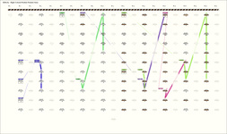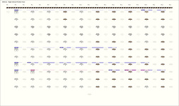 - With the exception of groups 7 and 17 (the 7 th group in each part), each group has the same patterning of colors: 2X, 2Y, 7X, Y is BB: W in all groups except groups 16 and 17 in which it is LC:W. The X varies so that the group colors alternate. In the first part (with the exception of 2 pendants in group 7), X is W in groups 1, 3, 5, 7, and 9 and it is LB in groups 2, 4, 6, 8, 10, In the second part: X is B in groups 11, 13, 15, 19; LB in 12, 14, 16; and YG in 18 and 20.