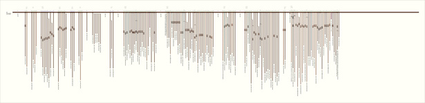 | Notes: | 1. El se195177al #1 se compone del cuerpo del pendiente #27. 2. En el espacio entre les pendientes 50 y 51, si cuerpo del pen. #51 esta amarado alrededor cordon principal. 3. El cuerpo del pendiente #52 esta amarado alrededor del cordon principal 4. Los pendientes #111 y 112 estan amarados par un hilo del cordon principal 5. Los 8 pendientes #81-88 estan juntados con mido (see pg 9 of notes on pendant UR9) 6. Pendientes #113-121 (=9 pendientes) estan juntados con un nudo en la manera de arriba Calender Khipu - see Harvard Khipu Database Project Notes by Gary Urton |