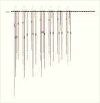 # of Groups & Cords: 7 Groups, 28 Cords - 28p # of Unique Cord Colors: 5 Benford Match: 0.6228 # Ascher Sums (pps, ips, cps, sps,...): 3 (2, 0, 0, 0,...) Similar Khipu:Previous (KH0410)Next (KH0407)