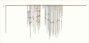 | Notes: | Fragmentary khipu with subsidiary main cord and subsidiary cords Khipu fragment with 2 main cords Includes 2 scrap packages A = 4 fragments; B = 12 fragments Blues here are greenish and faded. Main cord is S-plied dark tan, plied at left and severed at right. Measures 7 inches, 18 centimeters with a light brown subsidiary main cord, almost as large, plied through its own ply. In this way, they are interlocked and become one main cord. The light brown section has a knotted end and measures 10 / 25.5 for a total main cord length of 17 / 43.5. The so-called "blue" strings may have originally been dyed green (as they now appear). Very large knot values, but a lot of broken strings, so perhaps not possible to analyze numbers. |