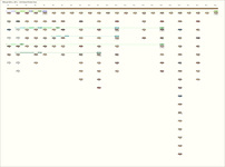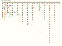 | Notes: | Whole khipu with subsidiary main cord Includes 3 scrap packages A = 1 fragment; B = 1 fragment; C = 8 fragments All strings Z-spun/S-plied. All knots in Z-direction until String 38, then all are S except figure-8s. Non-cotton fiber identifications were not confirmed with microscope or burn test After 24cm, main cord makes a single knot around another cord, which uses its long knot and they interlock. 13cm of the main cord comes out of this knot and has an end knot. The 2nd cord (maybe a top cord) is mot dk tn/lt tn with (going from the plied end) one S-single, one S3L (which uses its outer cord to interlock with main cord), 6 S-singles, and then another S-long knot with 8 turns. Interlocked thru the 1st single of the "top cord" there is a "subsidiary top" There seem to be at least 8 colors employed (lt/md/dk/ru -br, lt/dk tn, bl, and wh), but there are nuances that cannot be accounted for here and the blues (indigo) vary but very little and probably were originally the same hue. Main cord is 2 light brown strings S -twisted. 42.5in/108cm long to its end "knot." Decimal hierarchy and registers of knots are not followed, therefore knots listed by 1st, 2nd, 3rd on a single string and cord value totals not calculated (when a group seems to follow a register, those knots are kept in the same column as others in their register). "Values" are only suggested. This piece breaks from a lot of expected patterns: registers, decimals, color changes, using a stripe within a striped cord, the anomaly of the main cord/top cord, etc. Some loose cords from package B380 were found to be associated with this khipu and have been added to the data above (Groups 1 and 2). Material identifications are difficult at this time -- need to use a microscope to test samples. Big, uneven group spaces -- this is not an easily read, binary khipu. The indigo dye is greenish-blue in some places, like those found at Laguna de los Condores. How are the groups related? They are not consistent with each other. Camelid fiber is only used in the "introductory groups" (the groups that all follow same decimal system and have similar characteristics - their subsidiaries also follow a loose pattern). What is the purpose of the pendants found by themselves? They seem to match with a nearby group, but how do they relate? Beginning with Pendant 38, all knots turn from Z direction to S, except for the figure-8s (Es). Recto attachments of pendants also switch to verso with Pendant 76 (which is one of the solo pendants not directly linked with grp). No subsidiaries in Groups 13, 18, or 20. Some tertiary cords appear. Maybe in some places there are 2 knot types ( or 2 long knots) in one register because the information changed and something needed to be added? Medium brown color is a chocolatey-brown. There are actually 15 Groups if we do not count each of the individual cords as their own grouping. 118 pendants. Subsidiary cord 115A is much shorter than others. Did they run out of indigo-dyed cotton? 2 places with inverted long knots ("Tupicocha knot" in Salomon 2004). |