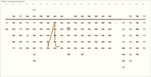 Many of the cords are broken and are missing their final long knot. There is a noticeable use of top cords as loop attachments All loop cords in this khipu are interpreted as top cord attachments One cord has a black hair in the white cord. Floating Cord in Group 5 mounted as cord 5 but different twist (Z)/thickness/color, indicates different cord. Terminal end is folded. Single knot , S-Twist, at 17.7. Ends at 18.7 with a single fold Group 6, Pendant 5, has a floating cord mounted next to it Photographs:
