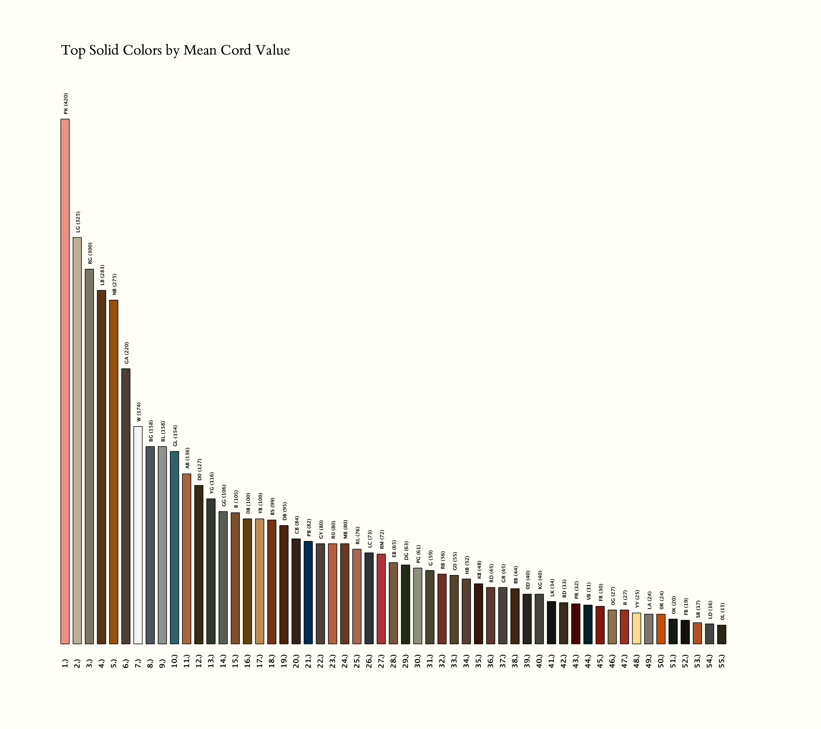 Note that as Dr. Clindaniel also noted in his thesis - the majority of the large-valued ascher cord colors in sums are barberpole or mottled - few are solid: