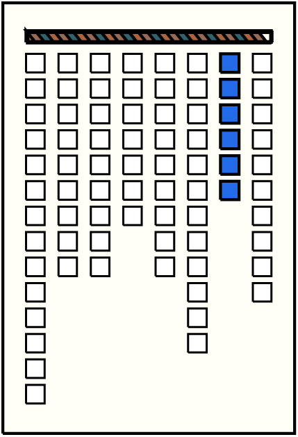| 0 | ![]() | 7 | 6 | W@[7, 1]:3 + KB@[7, 2]:4 + NB@[7, 3]:3 + RB@[7, 4]:3 + YB@[7, 5]:2 + MB@[7, 6]:2 |