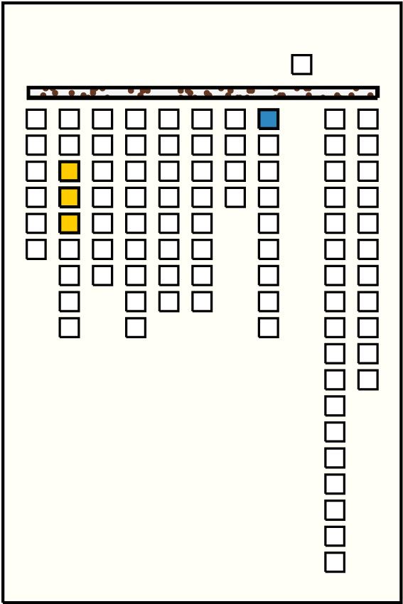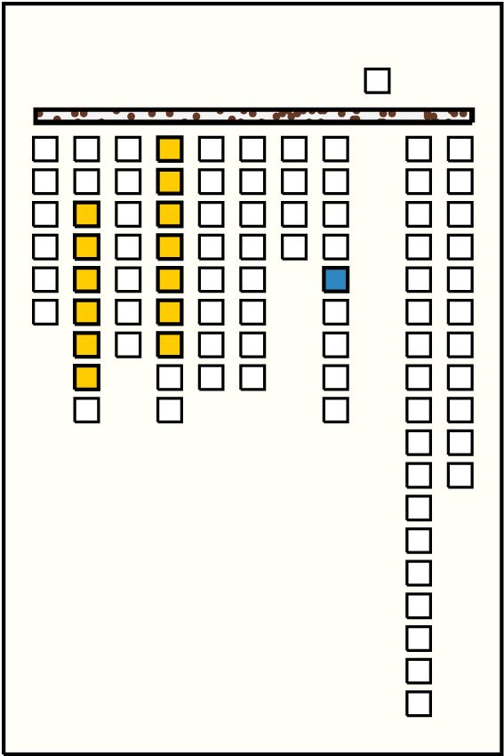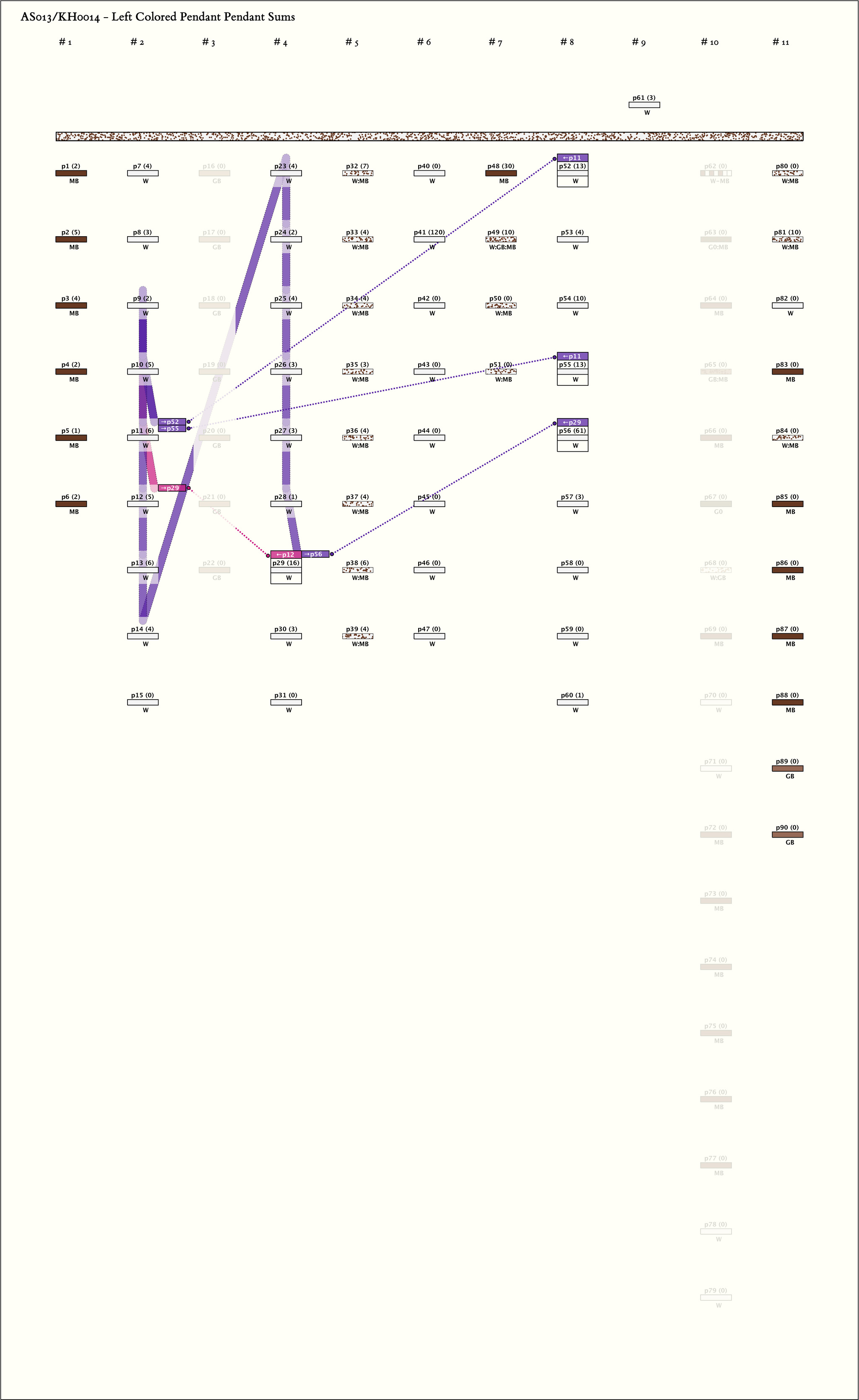 - Groups of W alternate with groups of different colors until the top cord occurs.