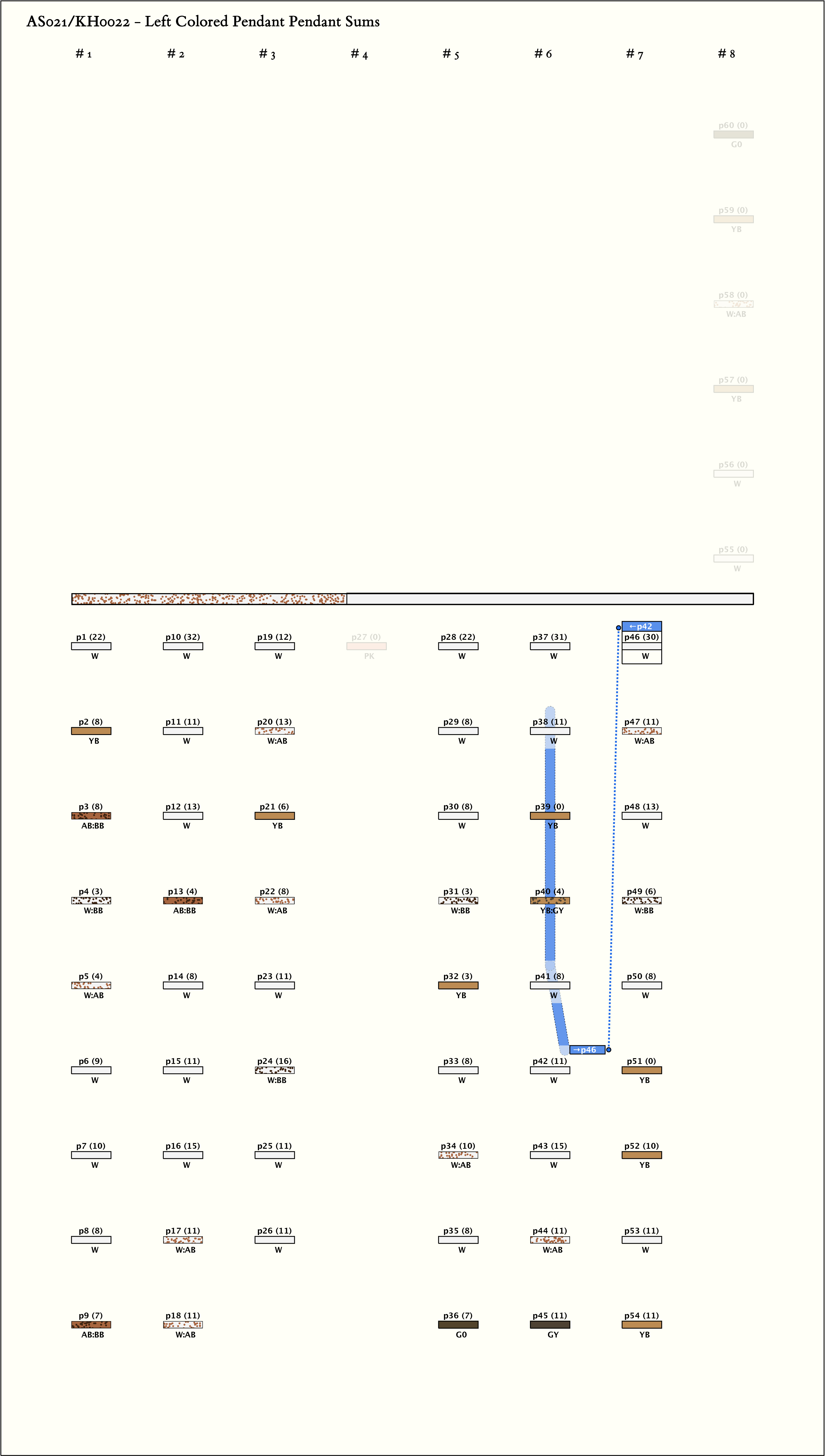 - When the numbers in Part I are compared with the numbers in Part II, of 36 possible matches, 5 are unknown due to breakage, 4 have no comparable cords, and 23 are the same. In the 4 cases where differences are present, the value in Part I is larger than the value in Part II. (In 3 of the 4 cases, the values differ by 1 on 1 pendant in each of the 3 groups. The fourth case is a difference of 3 on a subsidiary.)