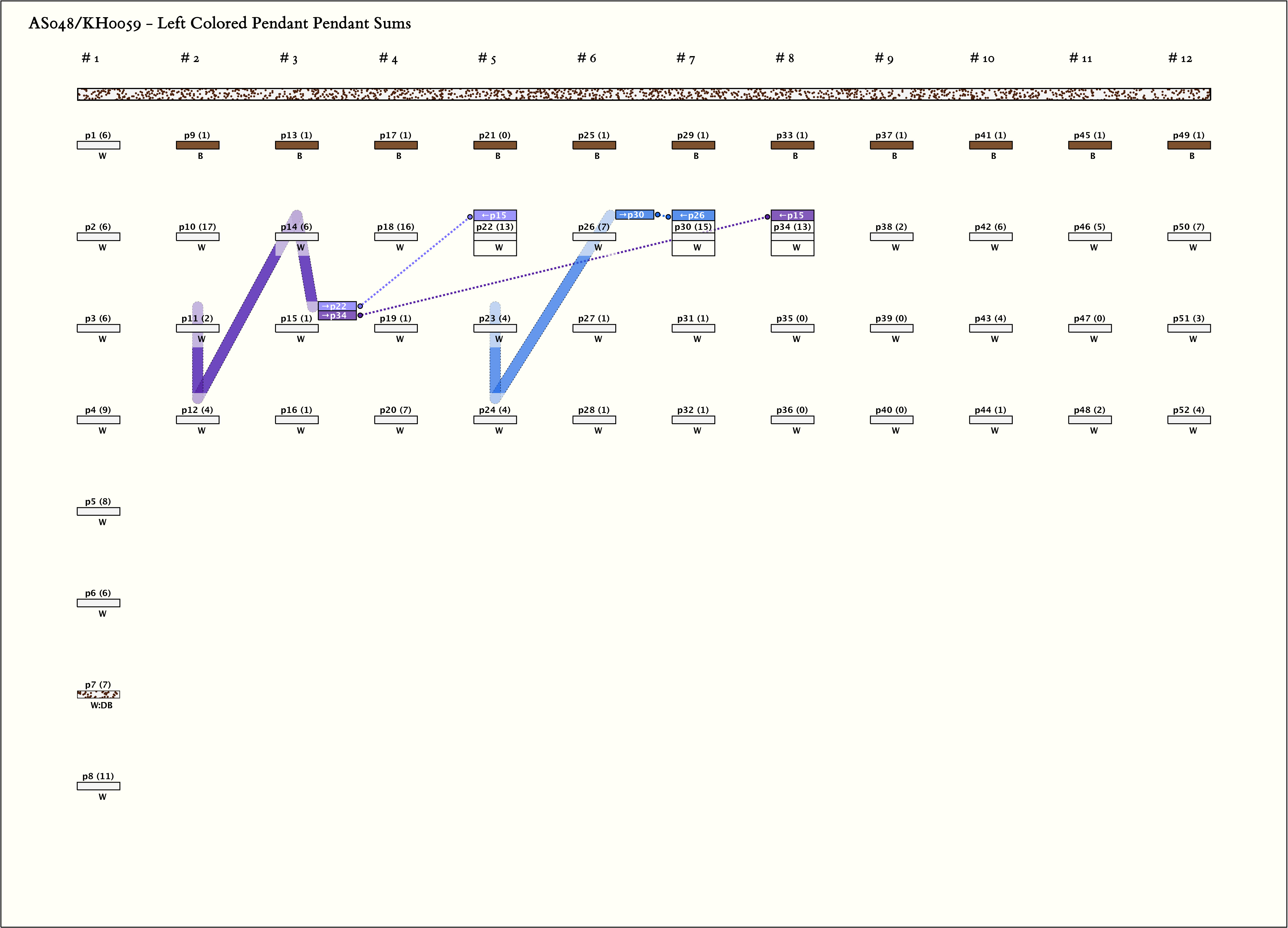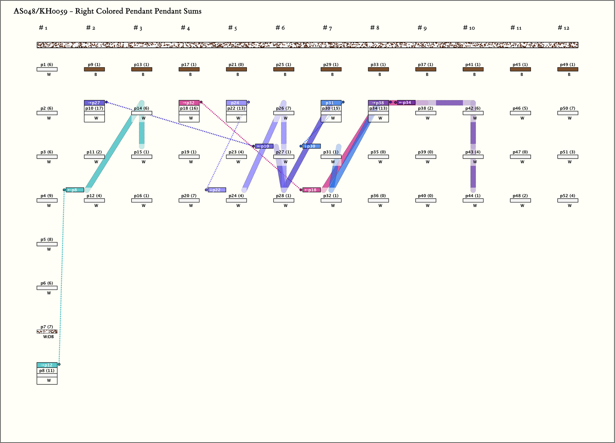 - The khipu has 12 groups by spacing. The last 11 groups each have 4 pendants and the same color pattern (B, W, W, W). For all 11 groups: