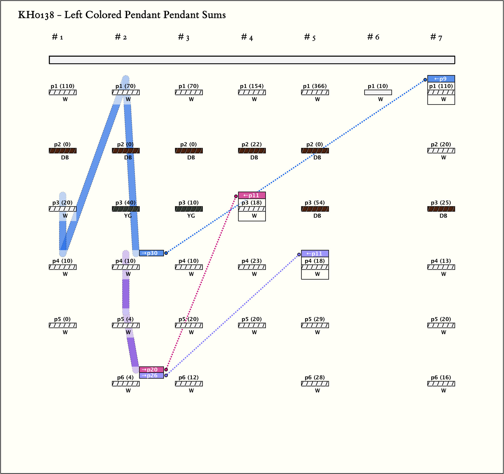 - Each group contains 5 or 6 pendants. In all groups, the first pendant and the last 3 pendants are W and, with the exception of the last group, the second pendant is DB.