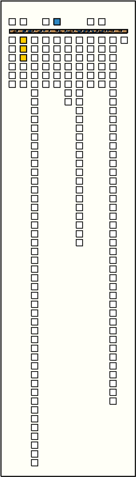 | 3 | ![]() | g2p6 : 23YB | 23 | 6 | g9p4: 6YB + g10p10: 2YB + g10p11: 2YB + g10p12: 5YB + g10p13: 1YB + g10p14: 7YB | |