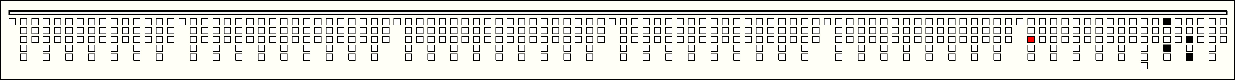 Since the main cord starts with a broken end, there may have been more parts. Also, we assume that the first 16 pendants of part 1 are missing due to the broken end, and that the first 10 pendants of part 5 are missing due to the break and mend noted between M4 and pendant 274. This means that 51/54 groups remain and 406/ 432 pendants remain. - The khipu only contains only the values 0, 1, 2, 3, 4, 6. In all groups: