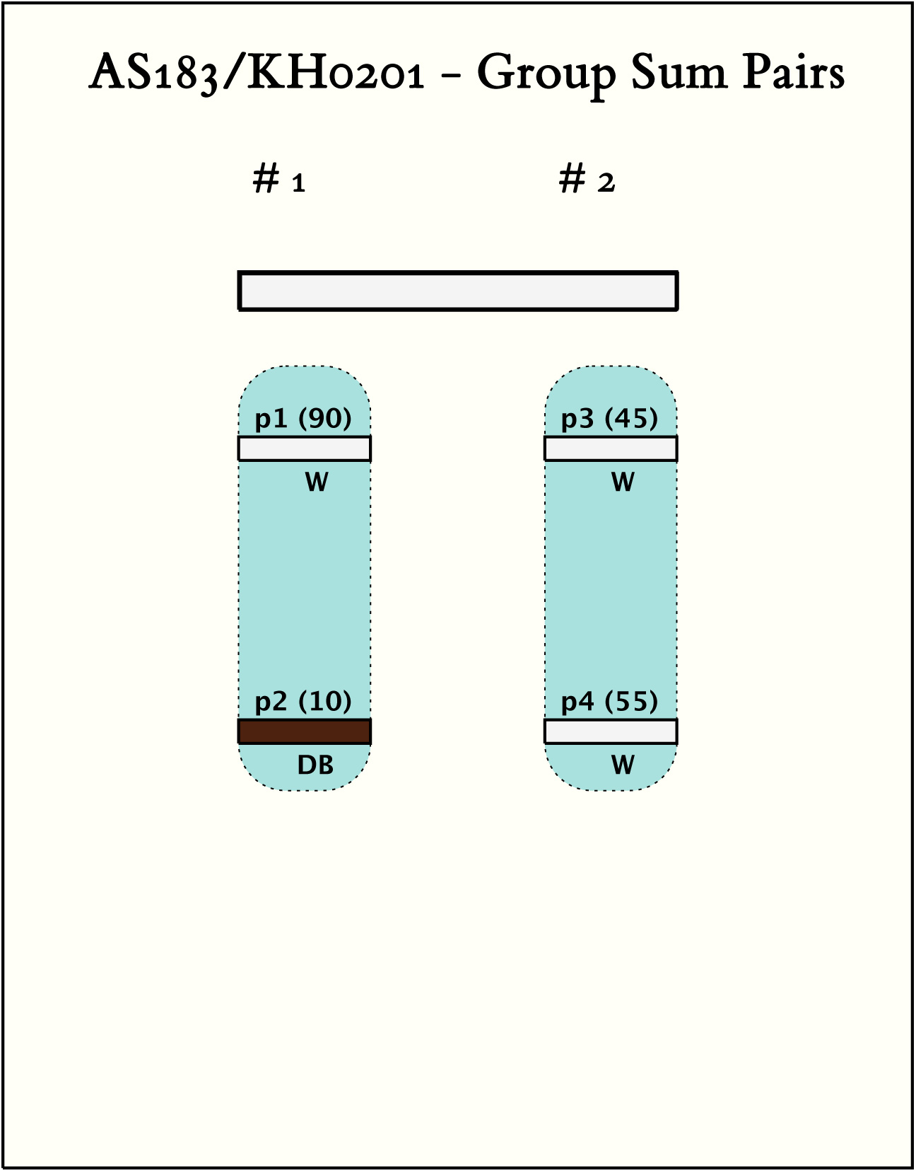 - By spacing, the khipu contains 2 pairs of pendants. Each pendant in the second pair is W with a DB subsidiary.