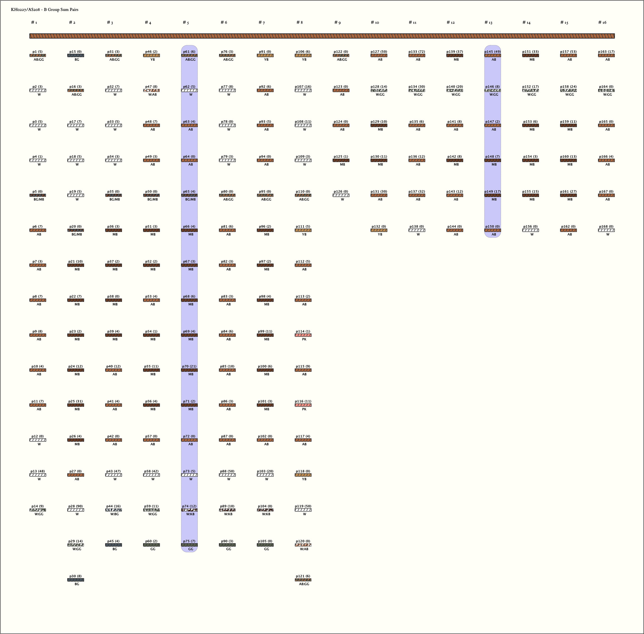 | 1 | ![]() | 83 | False | False | 8 | 5 | 13 | AB:GG@[4, 0]:6 + W@[4, 1]:5 + AB@[4, 2]:4 + AB@[4, 3]:0 + BG:MB@[4, 4]:4 + MB@[4, 5]:4 + MB@[4, 6]:3 + MB@[4, 7]:6 + GG:MB@[4, 7, 0]:4 + MB@[4, 8]:4 + MB@[4, 9]:21 + MB@[4, 10]:2 + AB@[4, 11]:0 + W@[4, 12]:5 + AB@[4, 12, 0]:3 + W:KB@[4, 13]:12 + GG@[4, 14]:7 | AB@[12, 0]:49 + W:GG@[12, 1]:8 + AB@[12, 2]:2 + MB@[12, 3]:7 + MB@[12, 4]:17 + AB@[12, 5]:0 |